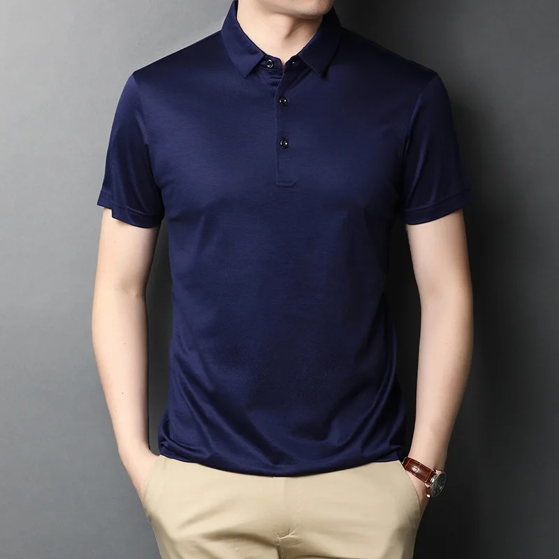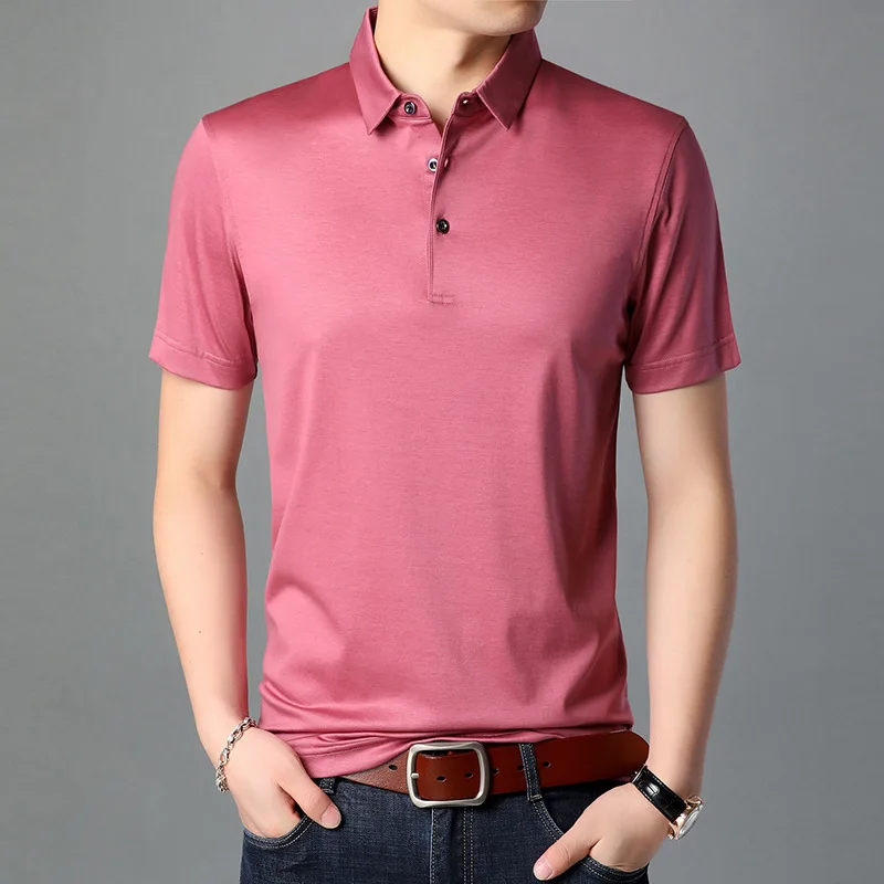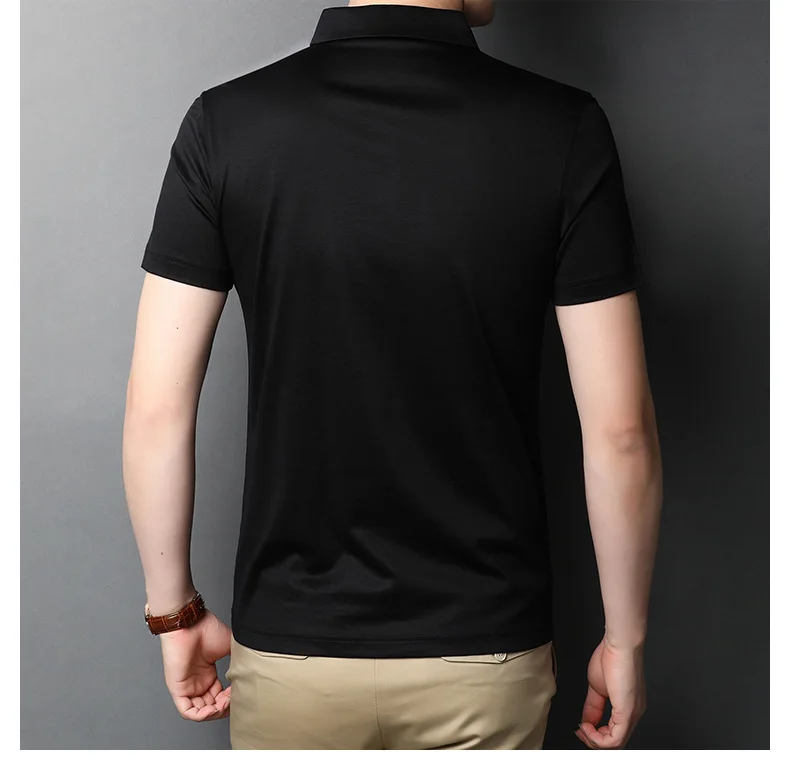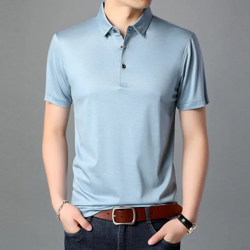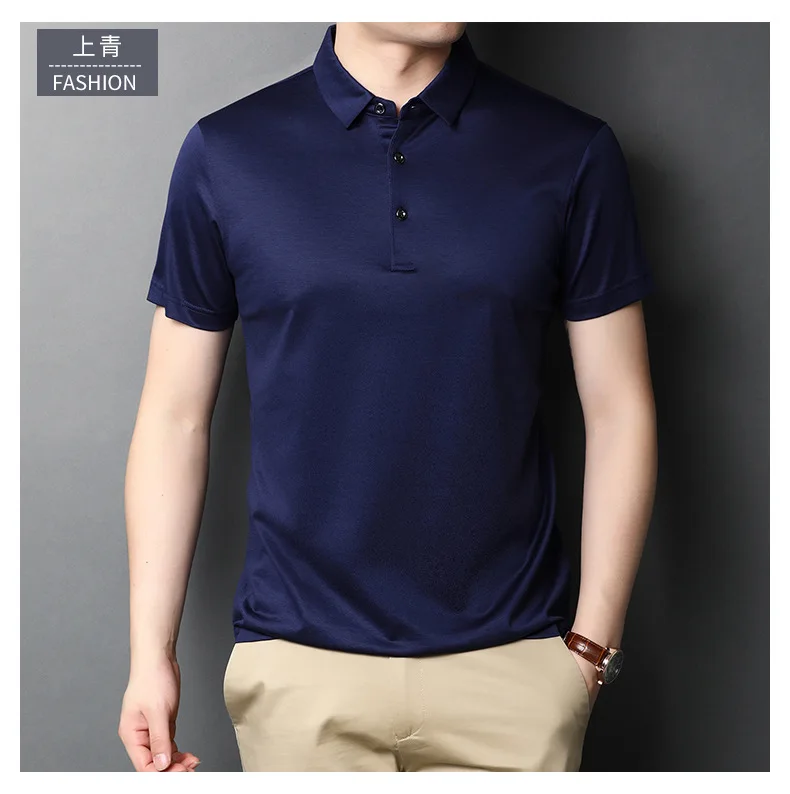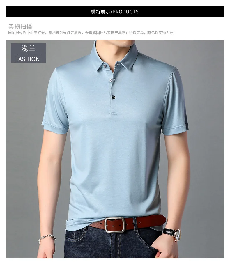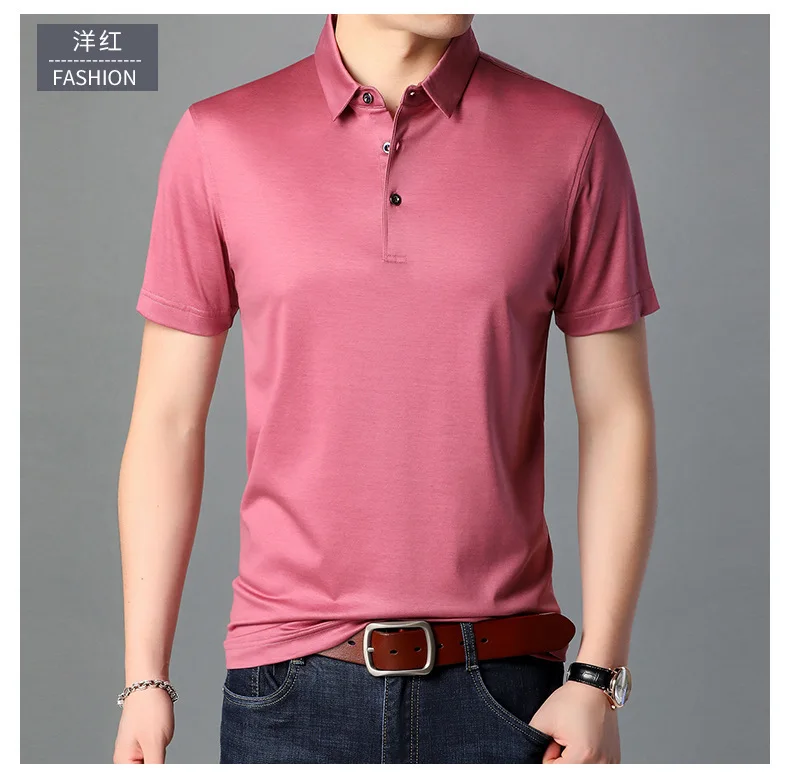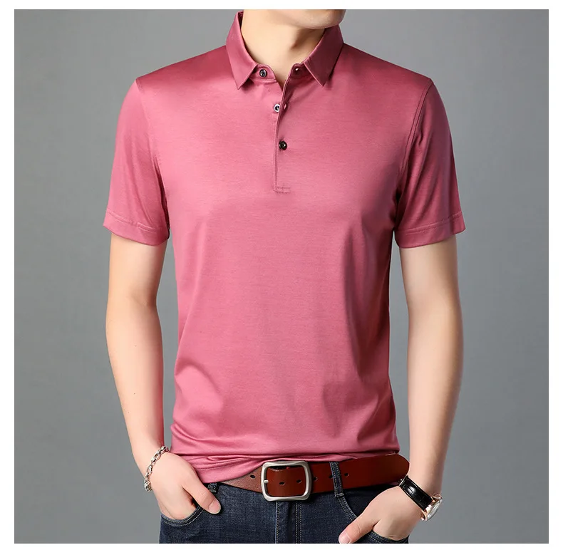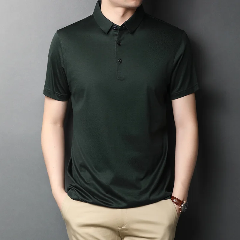 Рубашка-поло мужская приталенная, роскошная дышащая футболка из натурального шелка, с коротким рукавом, однотонная, от известного бренда, лето 2022