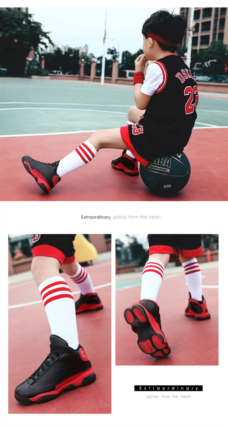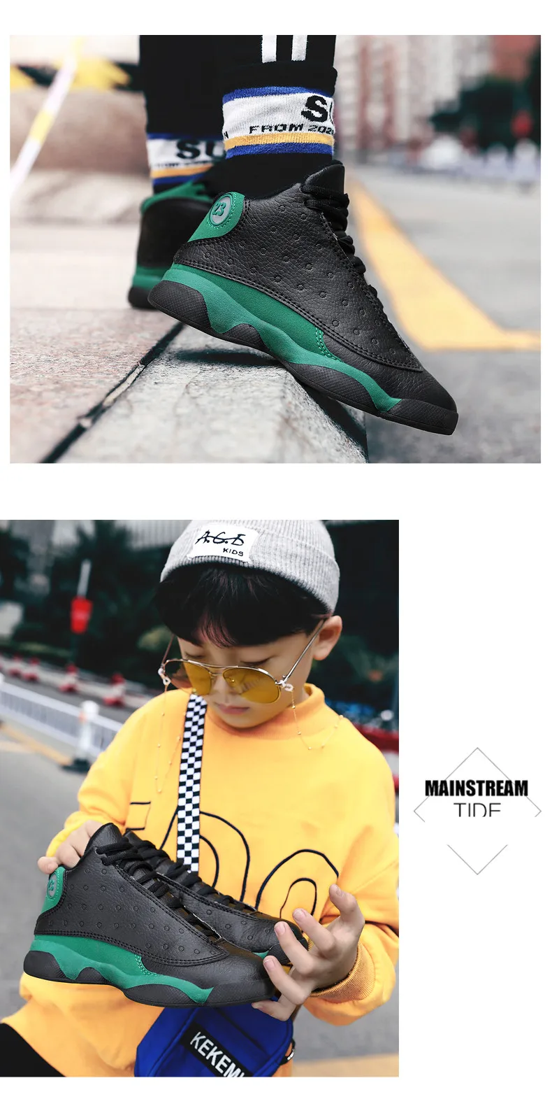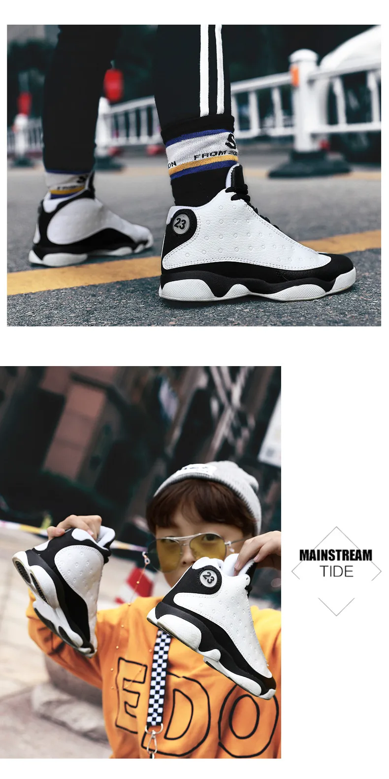 Для детей в стиле Ретро и Баскетбольная обувь модные Универсальные старшего ребенка высокие кеды для девочек Уличная обувь; Нескользящая подошва; Повседневные ботинки для мальчиков спортивная обувь