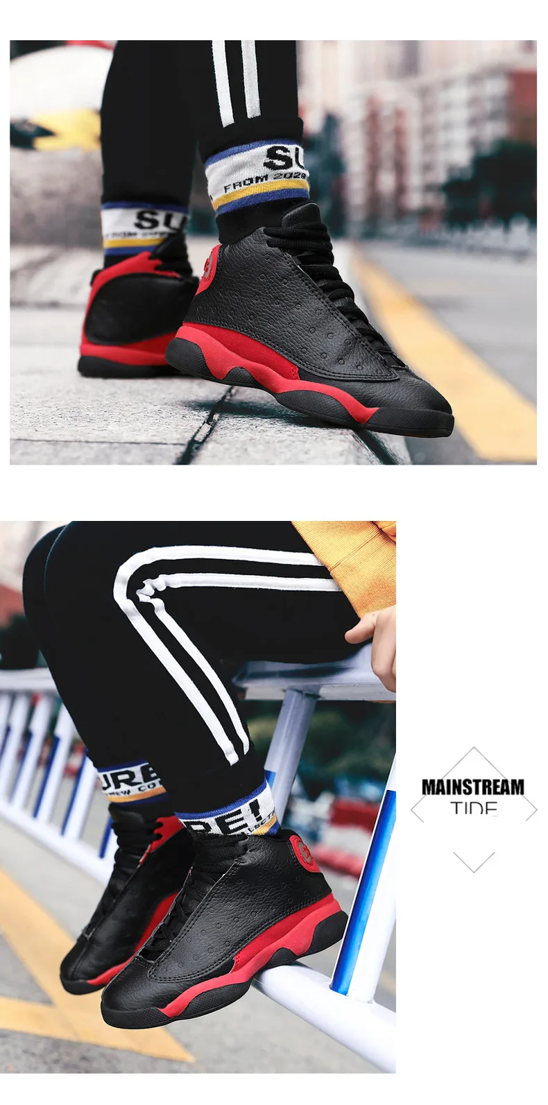 Детская обувь; Баскетбольная обувь в стиле ретро; Модные Универсальные кроссовки с высоким берцем для детей старшего возраста; Уличные Нескользящие повседневные ботинки для мальчиков; Кроссовки
