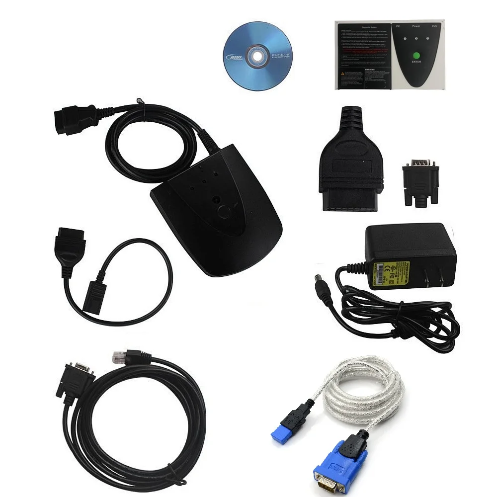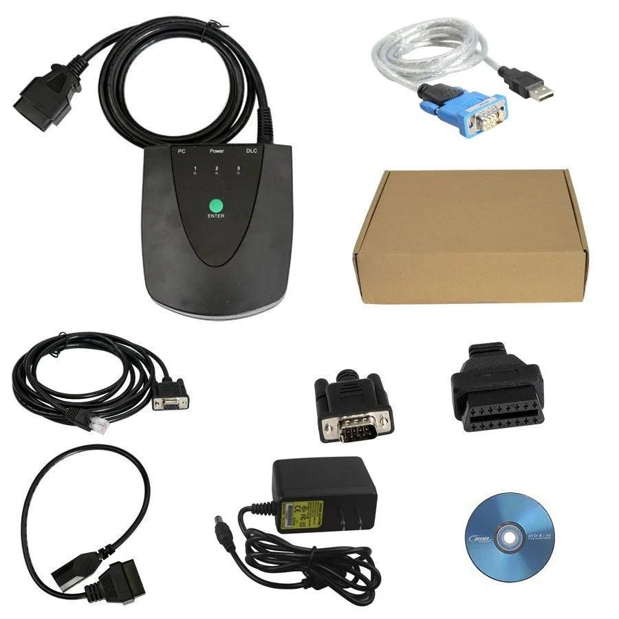 1 x он с кабелем OBD II 1x3 Pin кабель 1 кабель RS232 2 x адаптер для самостоятельного тестирования 1 шт. х адаптер переменного тока