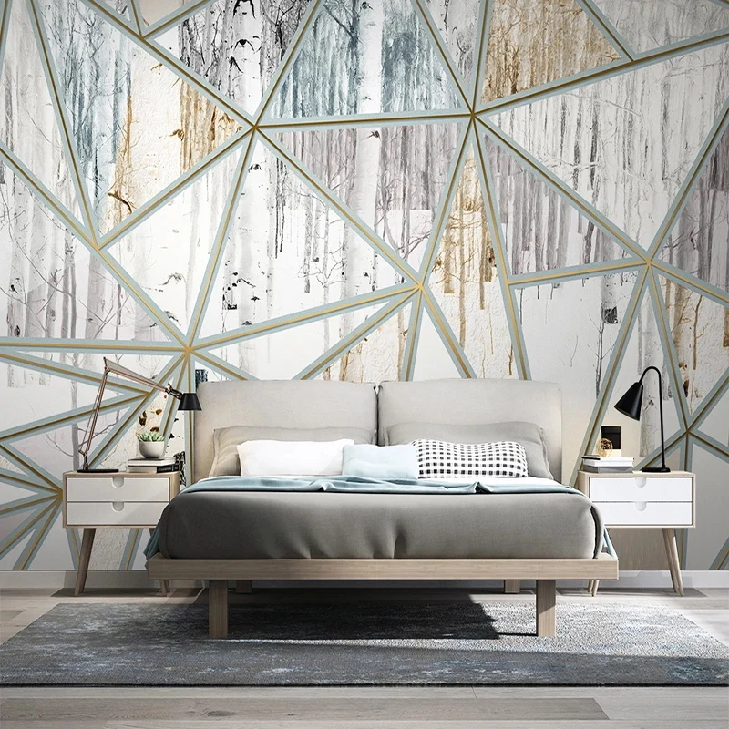 Пользовательские фото обои 3D Ручная роспись леса современные минималистичные Геометрические линии росписи гостиной телевизор диван фон