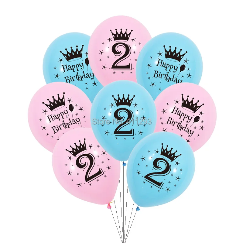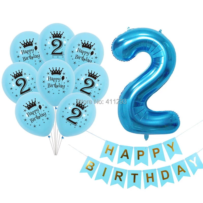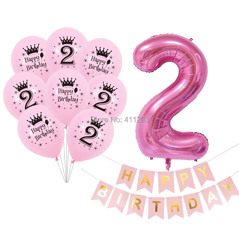 Воздушные шары для дня рождения, 2 года, для мальчиков и девочек, розовые, синие, украшения для 2-го дня рождения, цифра 2, баннер из фольги
