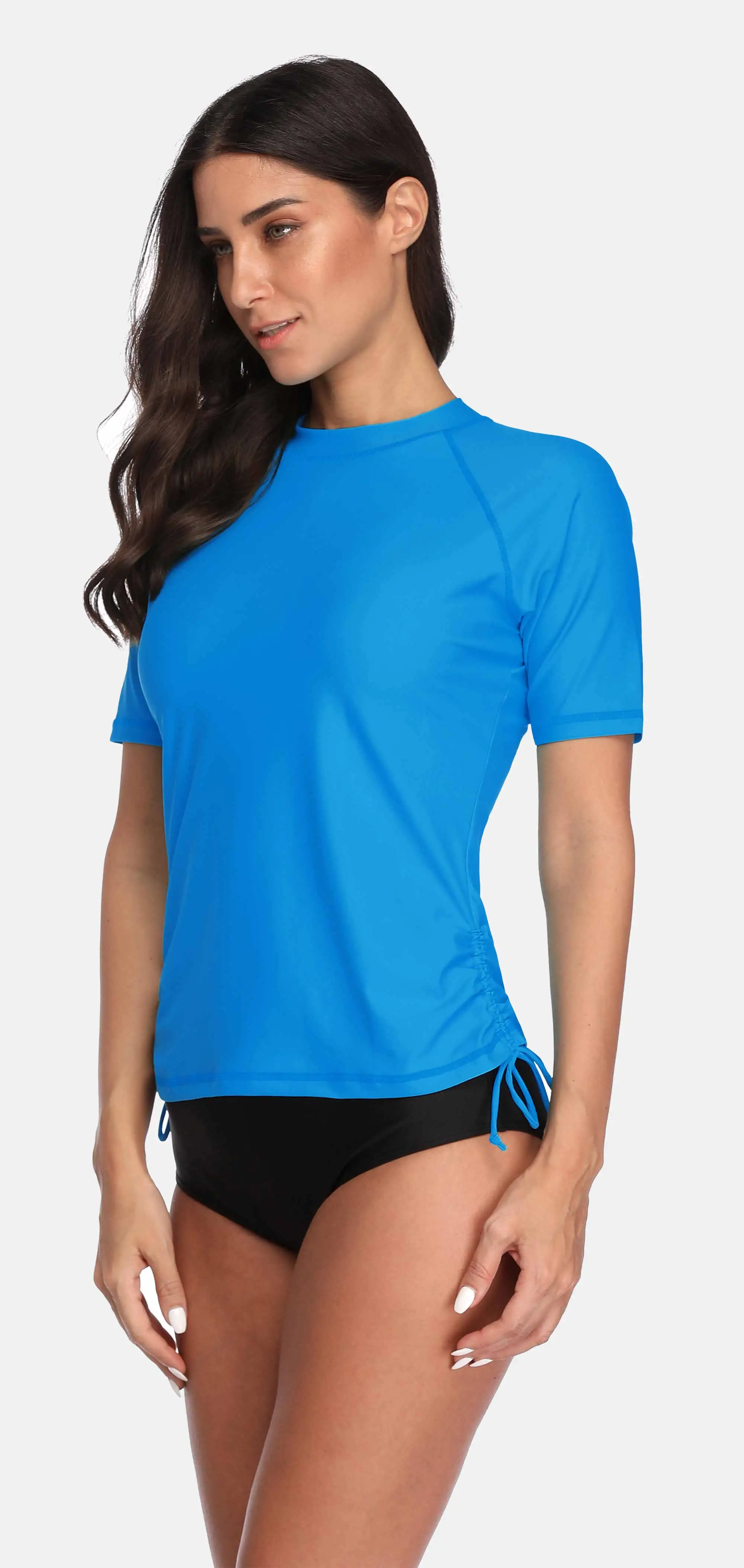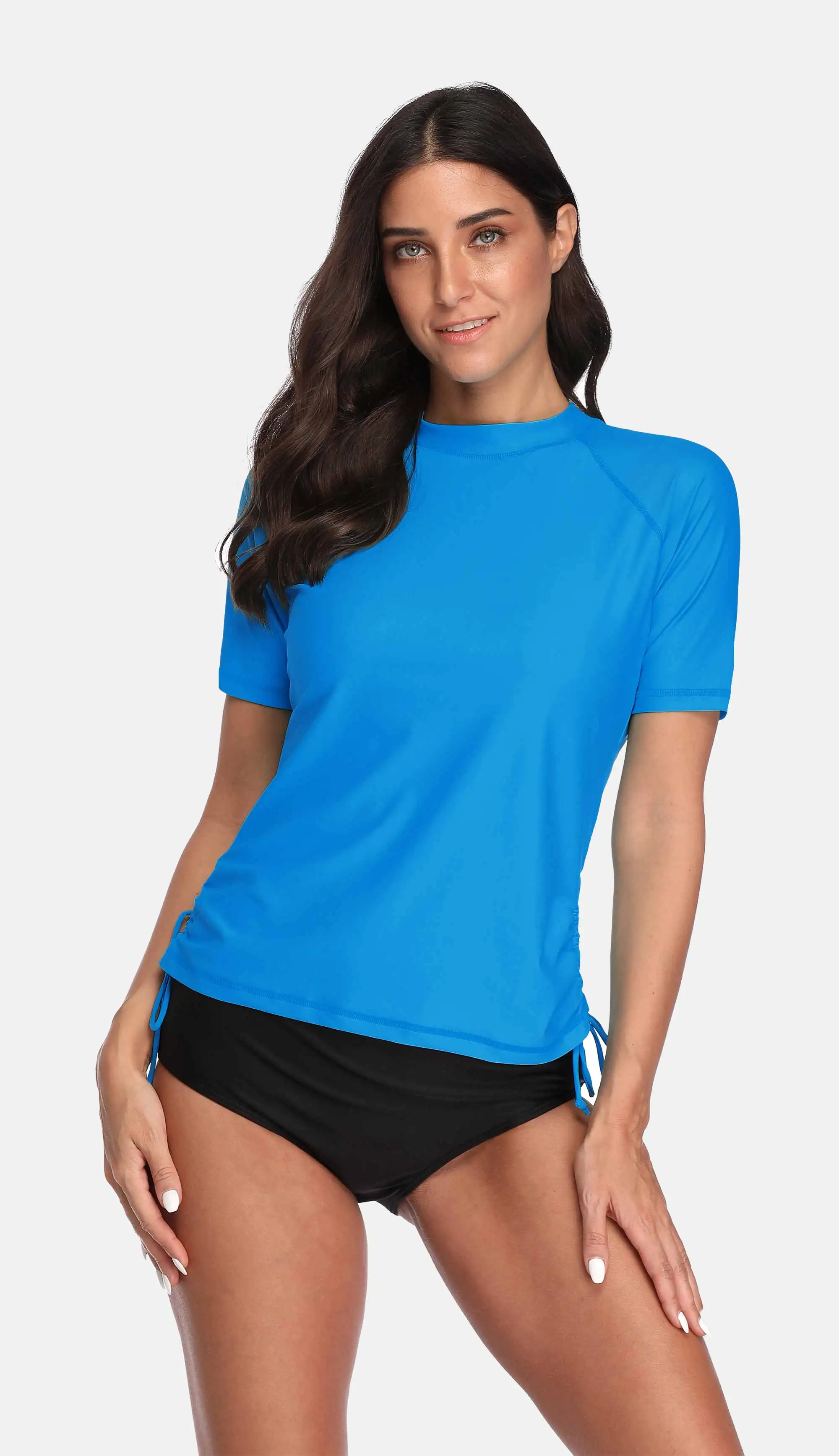 Купальник Charmo, женская рубашка с коротким рукавом, Рашгард, топ с перевязкой по бокам, топ для серфинга, рубашка для дайвинга UPF 50 +