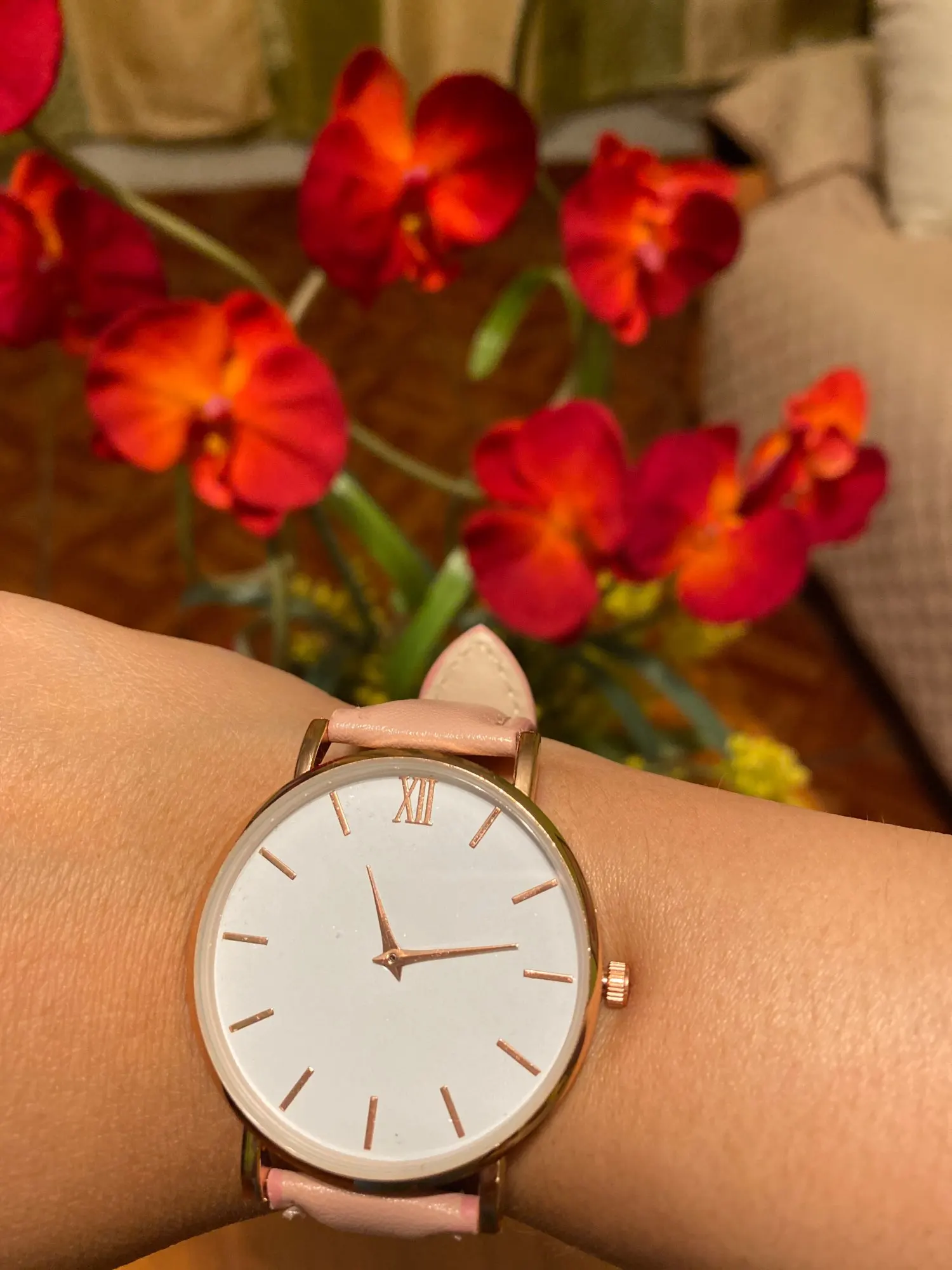 Для доставки потрачено время, но я думаю, что из-за пандемии. И часы немного краснее этих коричневых. И хранители часов такие сломающиеся и слишком тонкие. Цвет пряжки также отличается от цвета циферблата часов (это не розовое золото, это серебряный цвет), но кроме этих плохих вещей часы находятся в хорошем состоянии и стоят того. Я рекомендую этот❤②