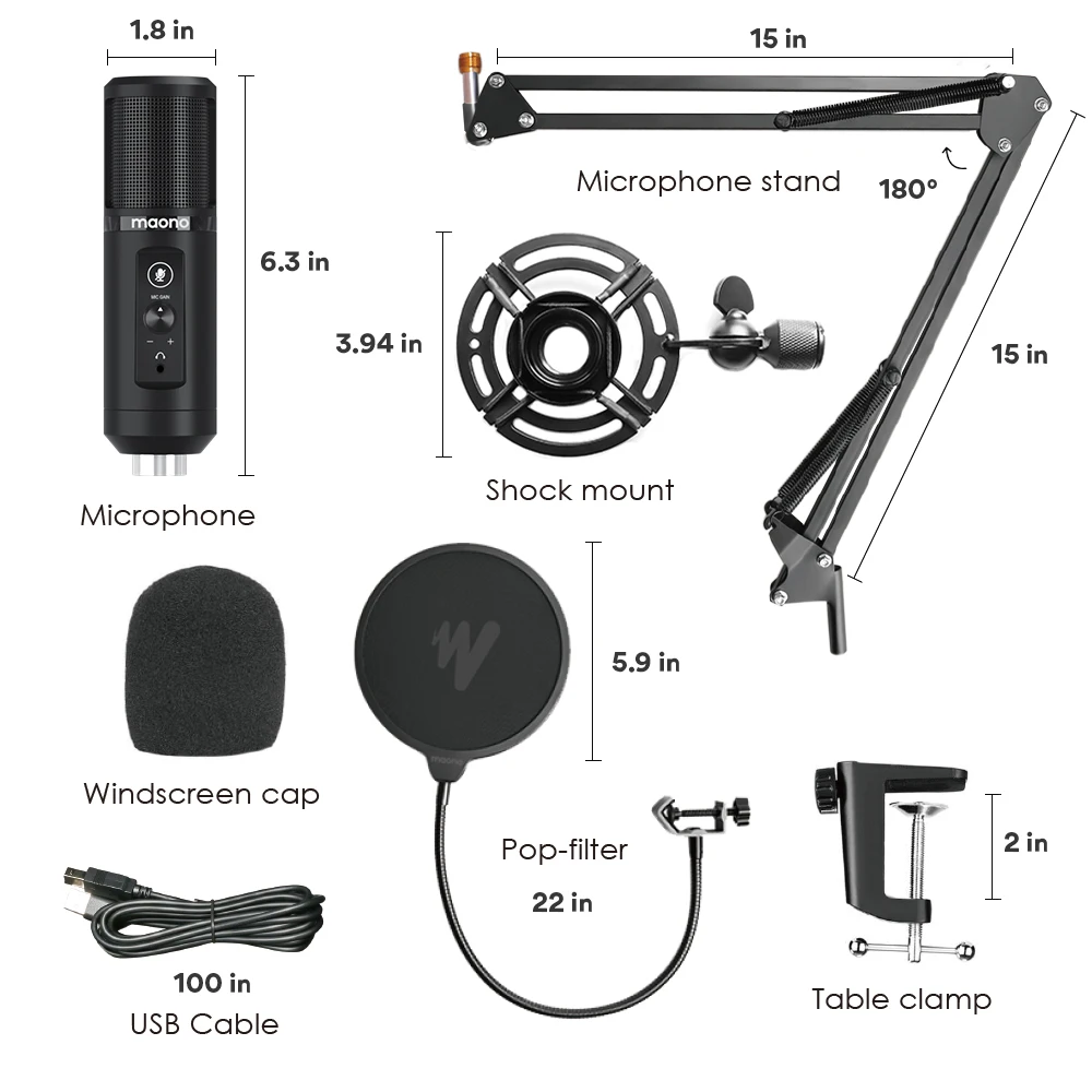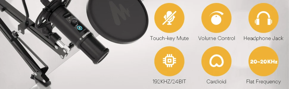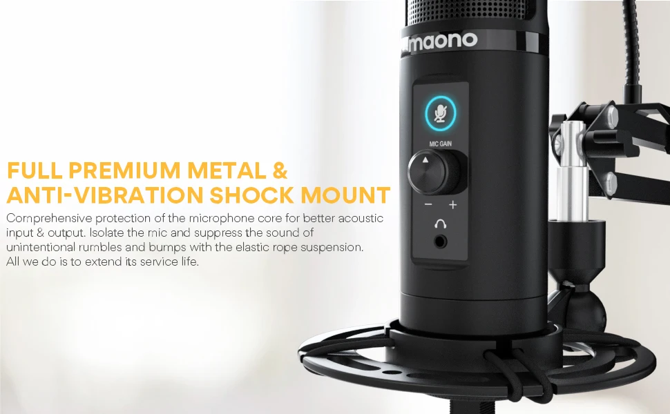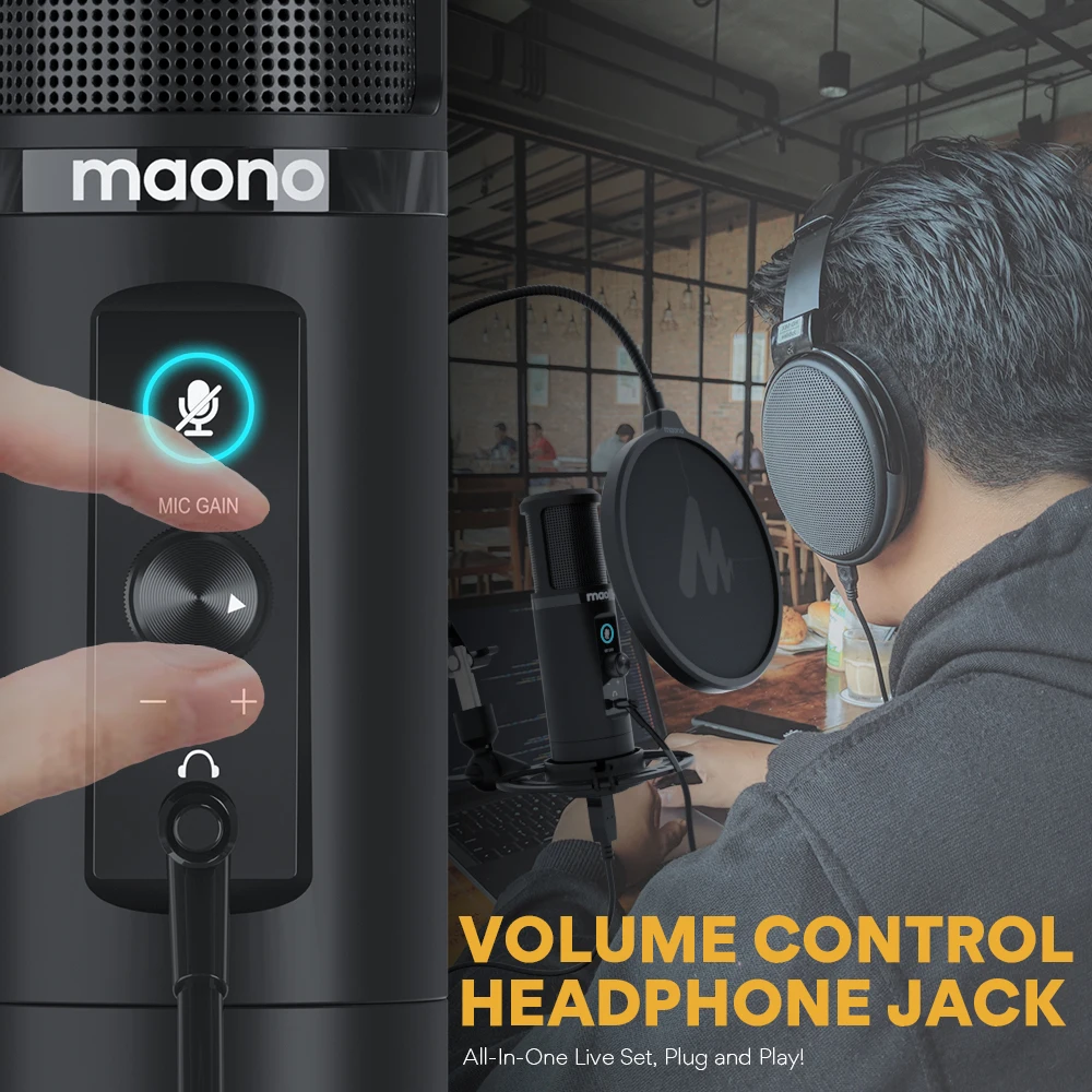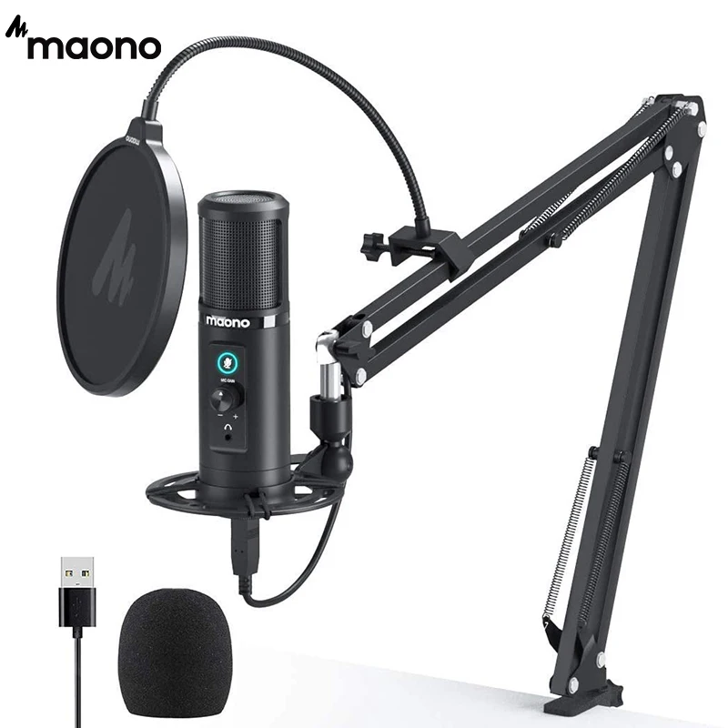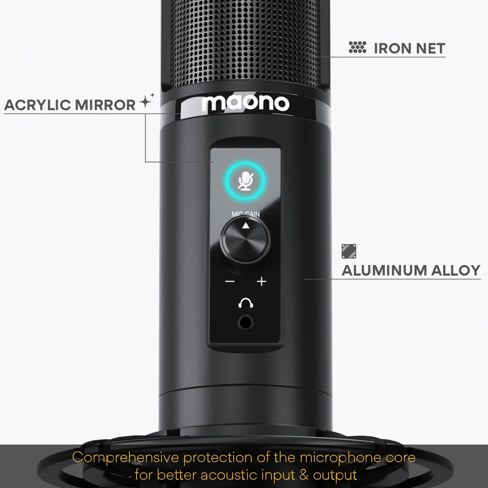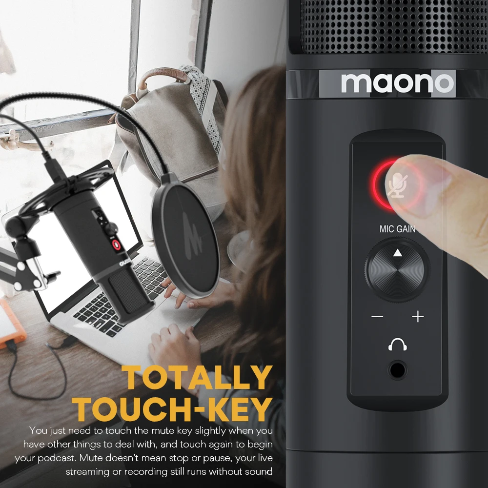 Профессиональный USB конденсаторный микрофон MAONO, кардиоидный компьютерный микрофон с сенсорной кнопкой отключения звука и микрофоном регулятор усиления для Tik Tok, подкастов