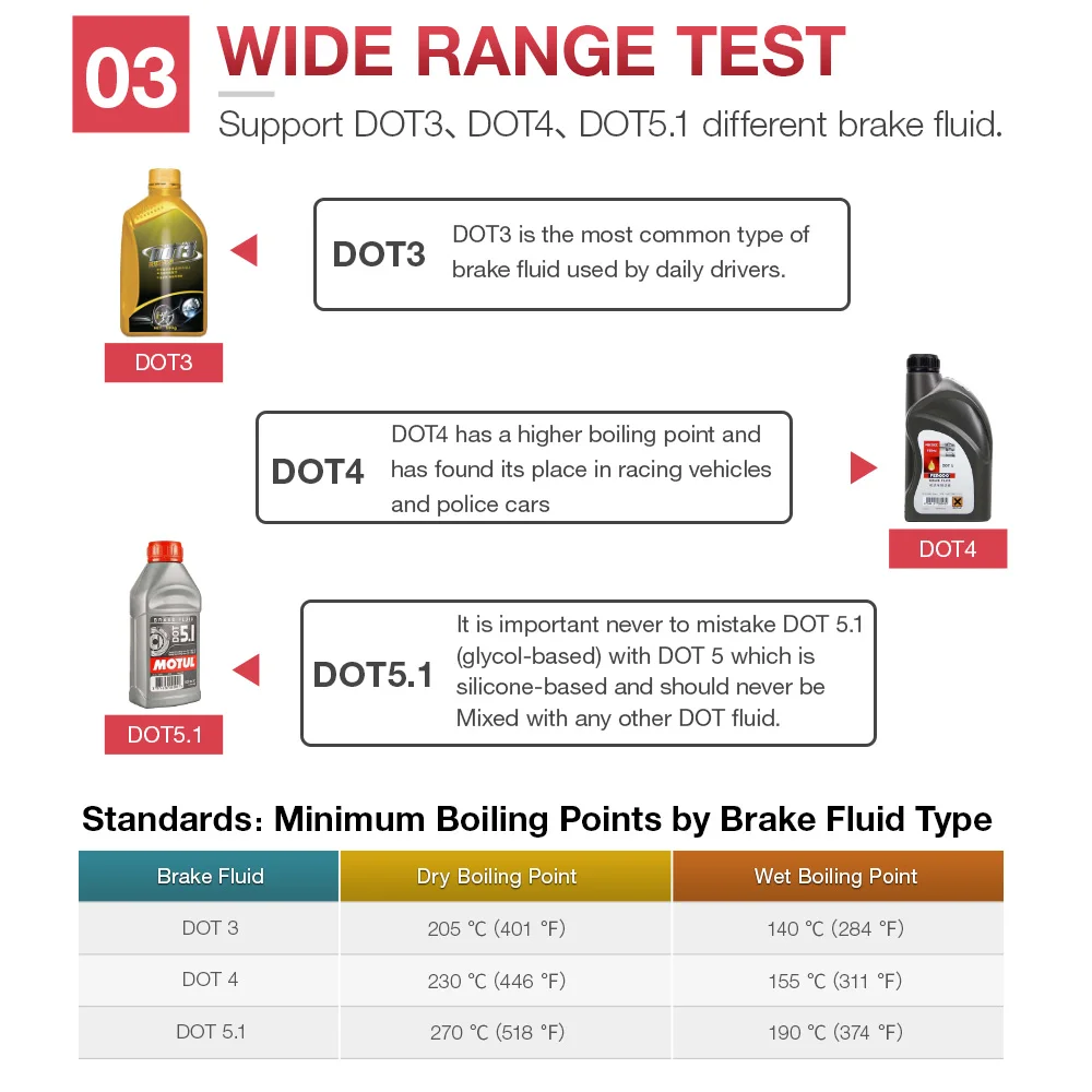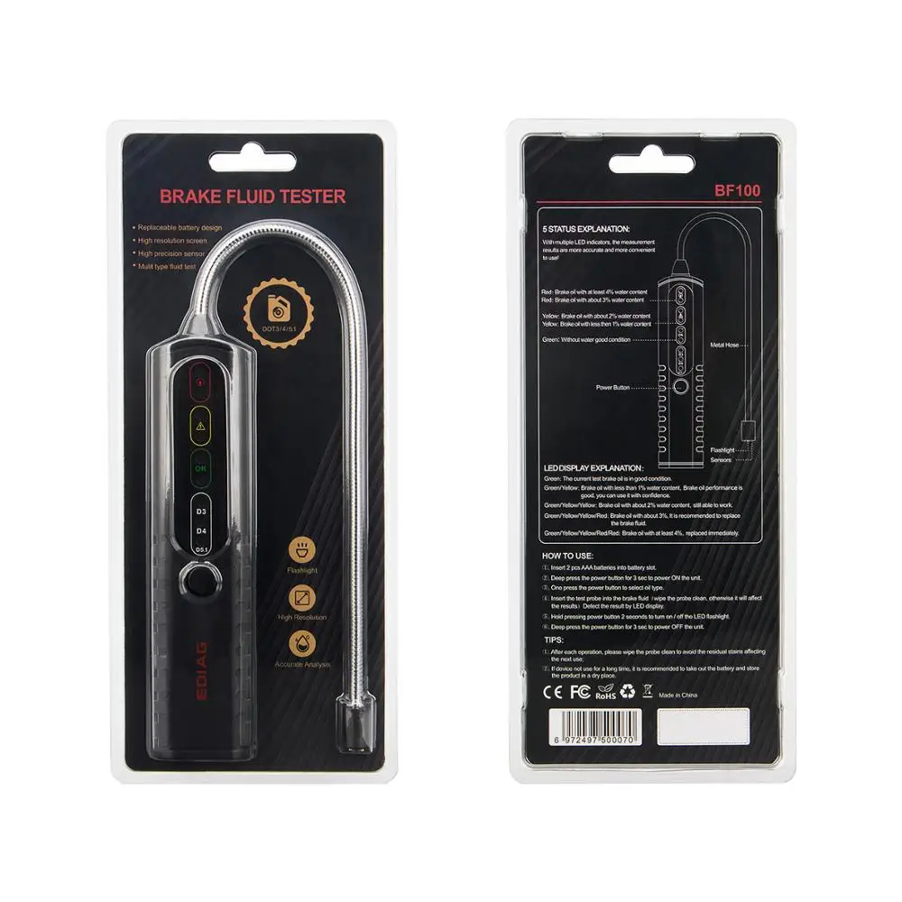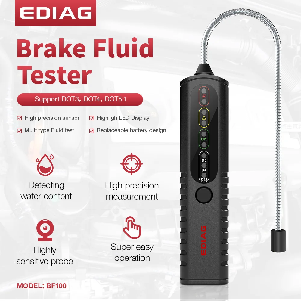 Тестер тормозной жидкости EDIAG BF100, автомобильный инструмент для тестирования жидкости DOT3DOT4DOT5.1 с зеленымжелтымкрасным светодиодом DY23, тестирование жидкости BF 100