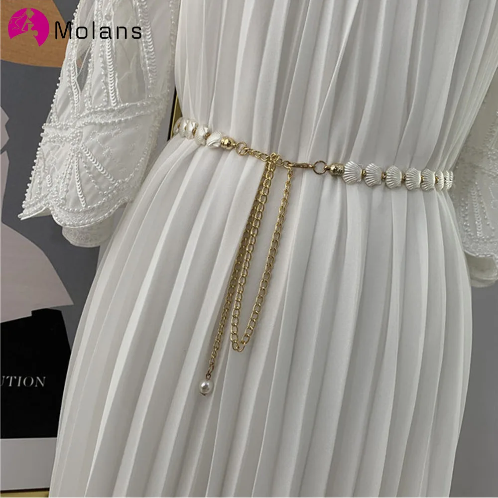 Женский пояс MOLANS, элегантный пояс-цепочка с кисточками, украшенный жемчугом и металлом, для свадебной вечеринки, 2020