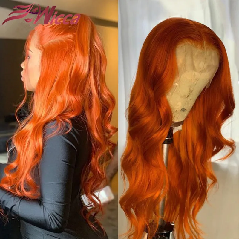 Парик из апельсинового имбиря, цветные парики из человеческих волос 13 х4, парики из человеческих волос на сетке спереди, бразильские предварительно выщипанные парики без повреждений, плотность 180 для женщин