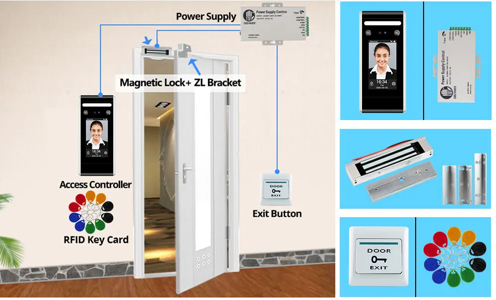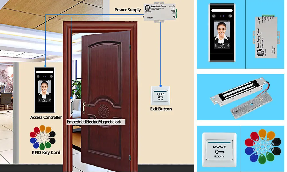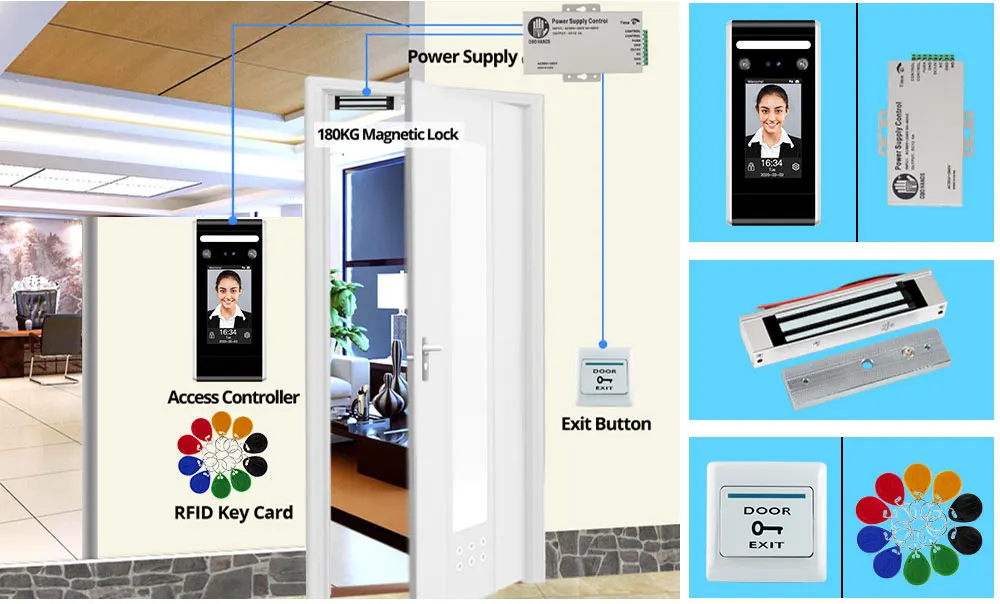 Посылка ходит: клавиатура управления доступом + источник питания + магнитный замок 180 кг + U-образный кронштейн + кнопка выхода + брелоки 10 шт.