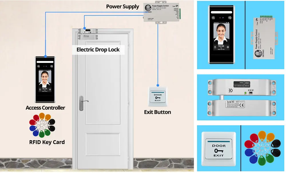 Посылка ходит: клавиатура управления доступом + источник питания + Электрический замок с болтом + кнопка выхода + 10 брелоков