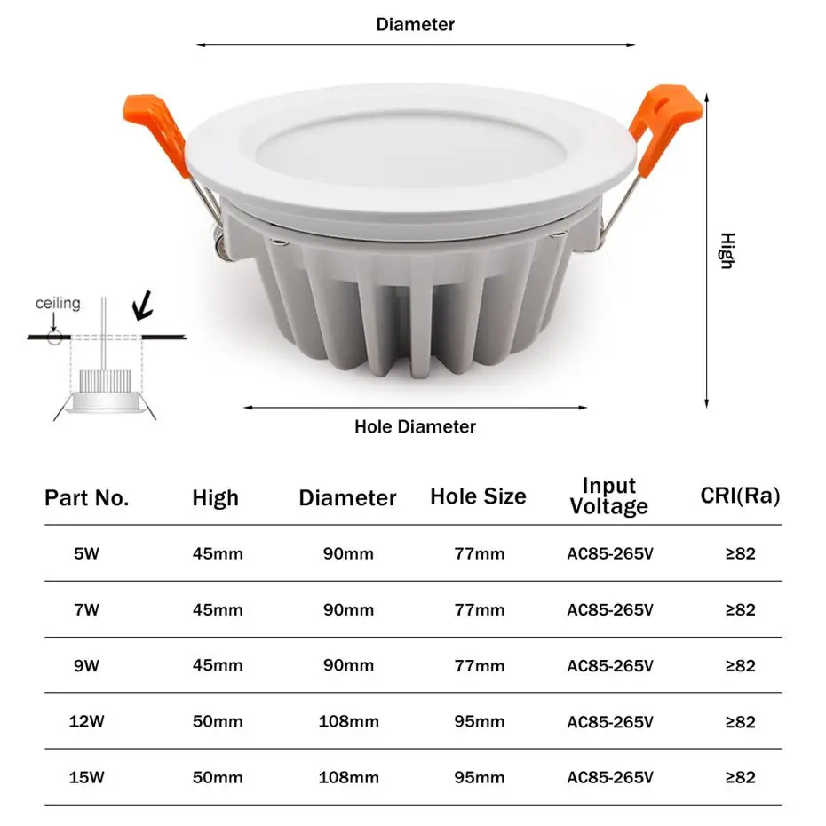 Водонепроницаемый потолочный светильник + водонепроницаемый светодиодный драйверВход: AC85-265VМатериал корпуса: высококачественный алюминийБыстрое отведение тепла.Длительная работа.Мощность: 5 Вт 7 Вт 9 Вт 12 Вт 15 ВтИсточник светодисветильник: светодиодный чип SMD5730Люмен (лм): 100-110 лм/ВтУгол свечения: 120 °Индекс цветопередачи: Ra >80Цвет светильник Холодный белый (6000-6500K)Теплый белый (3000-3500K)Естественный белый (4000-4500K)