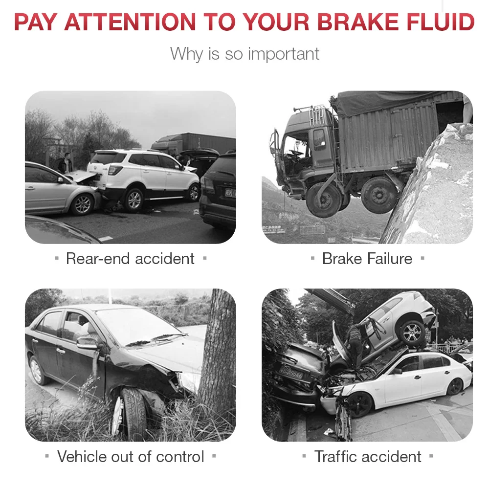 Каждый водитель знает важность тормозной жидкости во время вождения, она непосредственно связана с безопасностью транспортного средства и личной безопасностью. Так в автомобильной промышленности. Вот почему так много людей называют тормозную жидкость «защитником». Общий цикл замены тормозного масла составляет 2 года. Тормозное масло само по себе имеет сильные характеристики поглощения воды, оно поглощает влагу в окружающем воздухе, например, мойка автомобиля, humidair и т. д. Что непосредственно приведет к падению качества тормозного масла и может привести к аварий:1. Авария сзади2. Сбой тормоза3. Транспортное средство выходит из-под контроля4. ДТП.