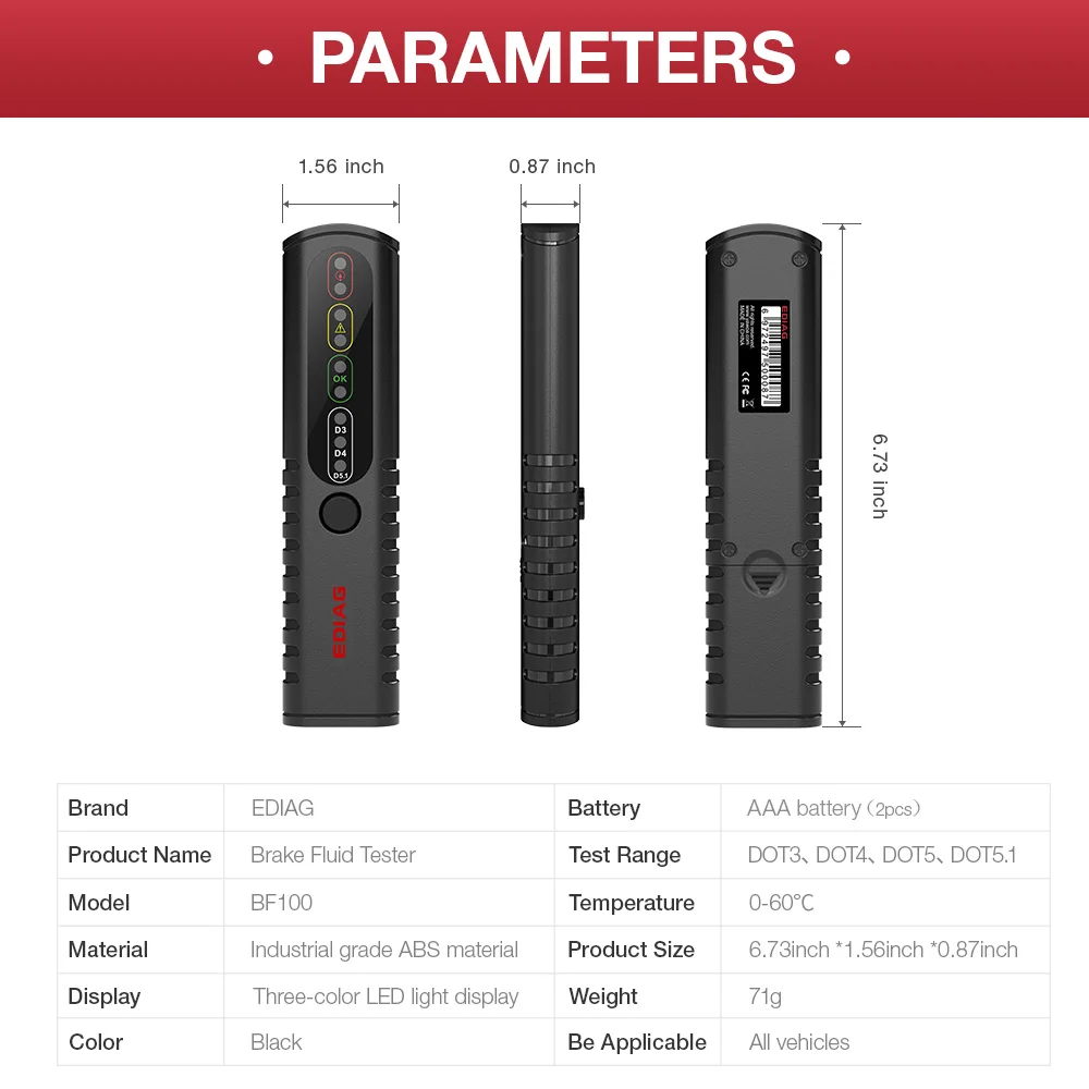 Ediag BF100 тестер тормозной жидкости DOT3, DOT4, DOT5.1
