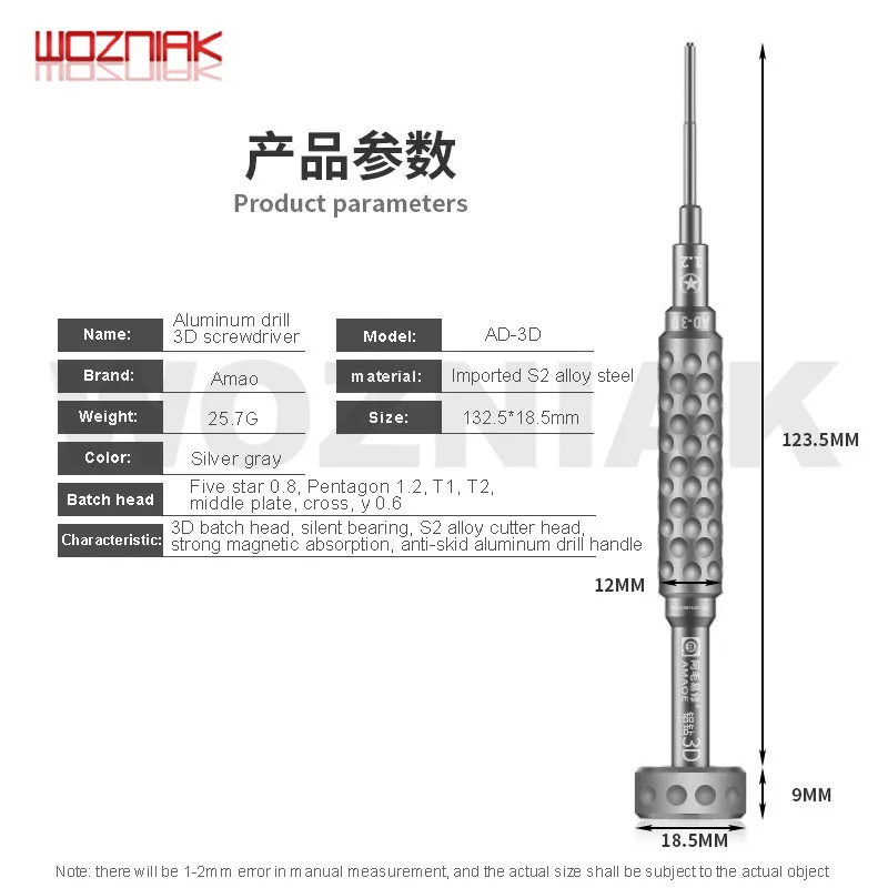 Дрель woaniak, алюминиевая 3D отвертка для ремонта мобильный телефон, отвертка S2, партийная головка из сплава для IPHONE, Android 7, 8, x