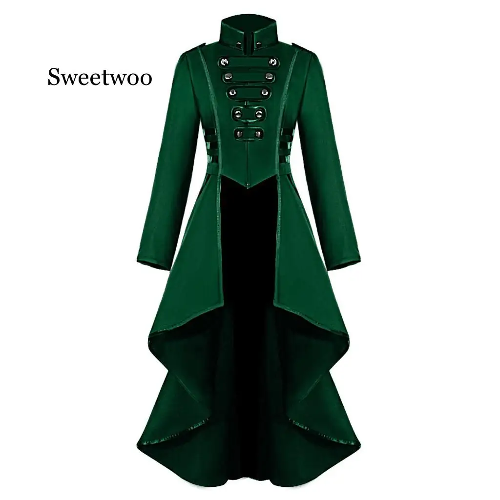 Женское длинное готическое стимпанк пальто с пуговицами и кружевным корсетом 2020