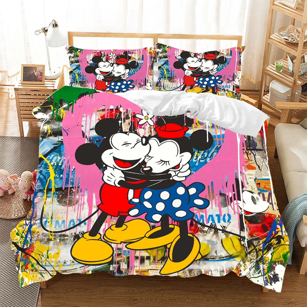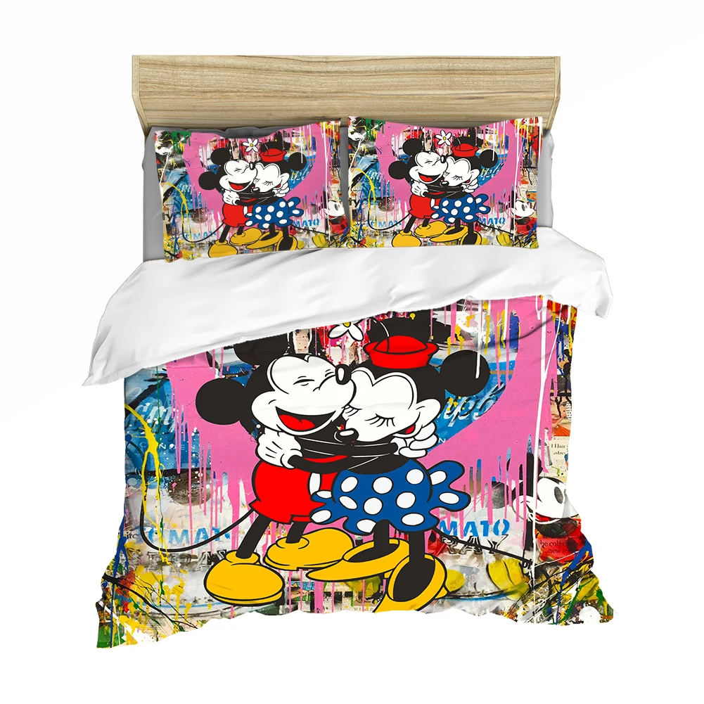 Disney черные чехлы для мобильных телефонов с Микки и Минни постельных принадлежностей Твин Королева Размеры комплекты постельного белья для детей, пуховое одеяло крышка наволочки подарки