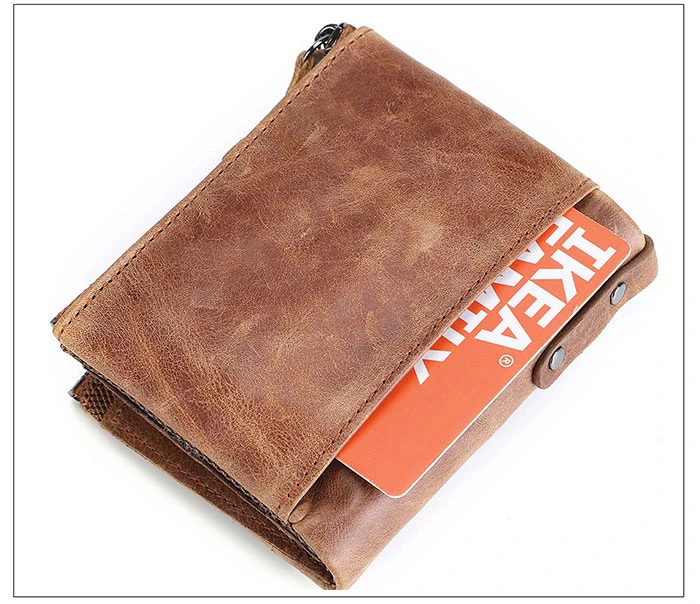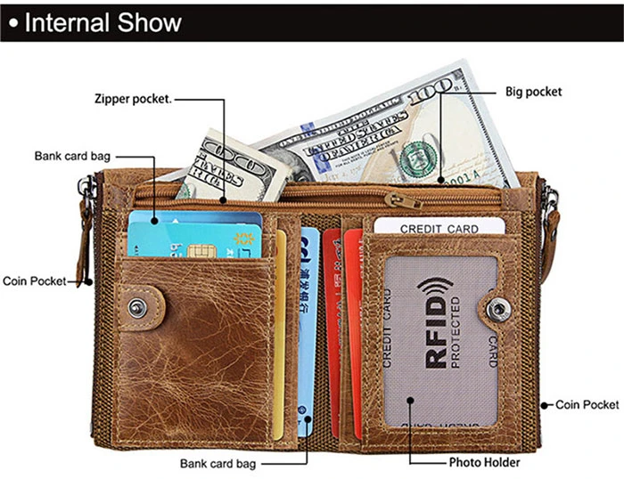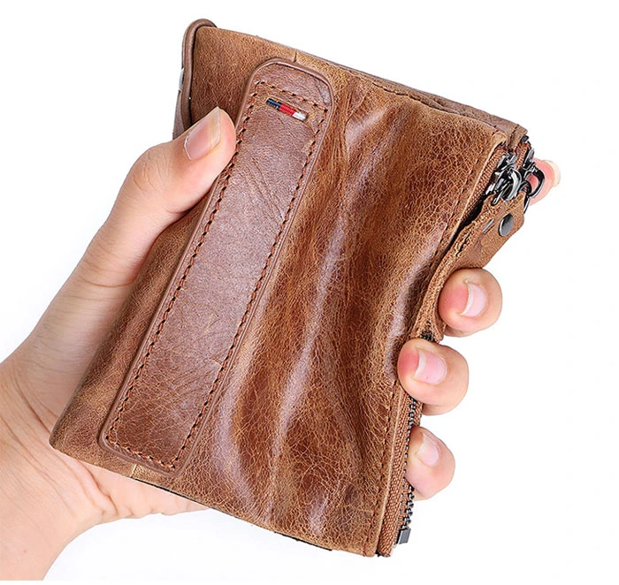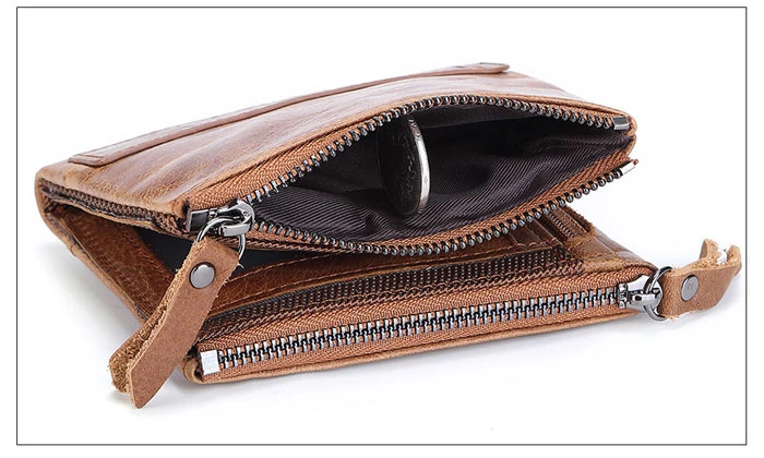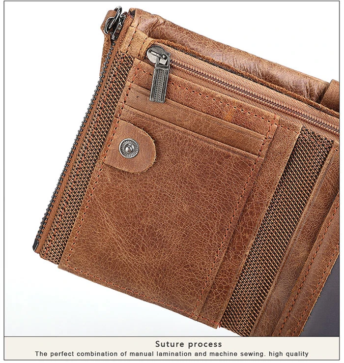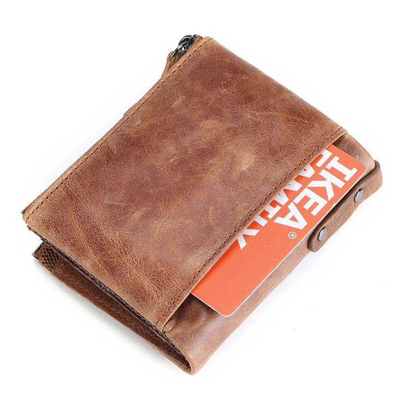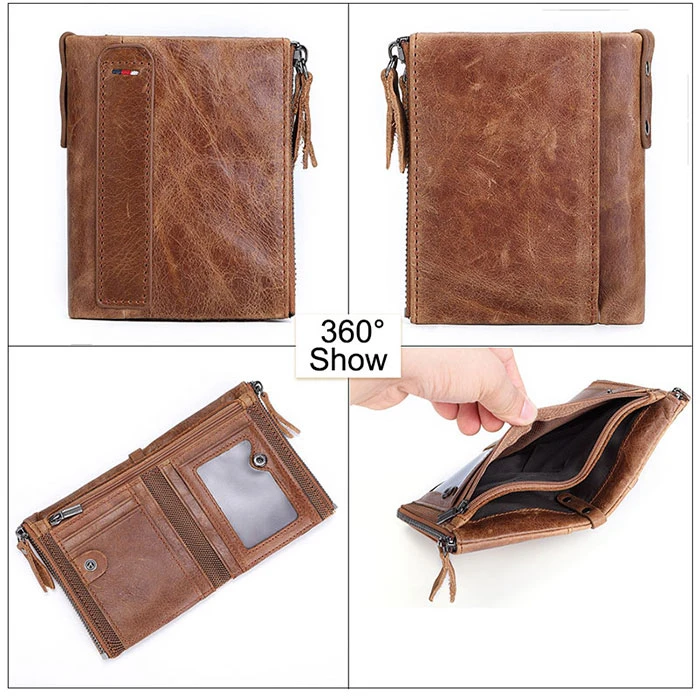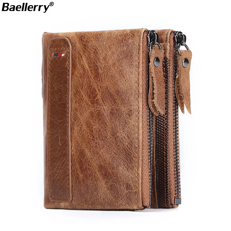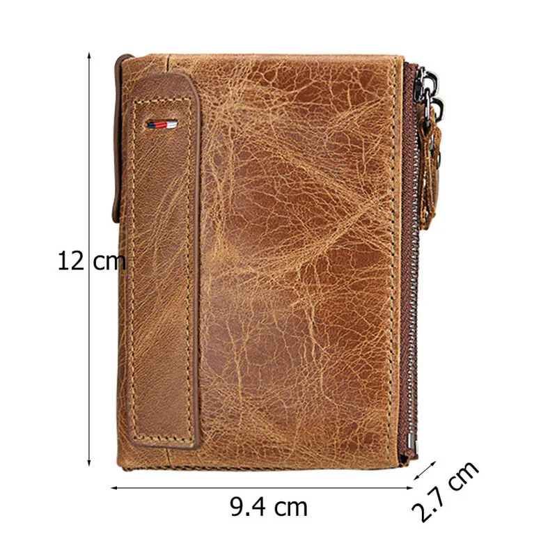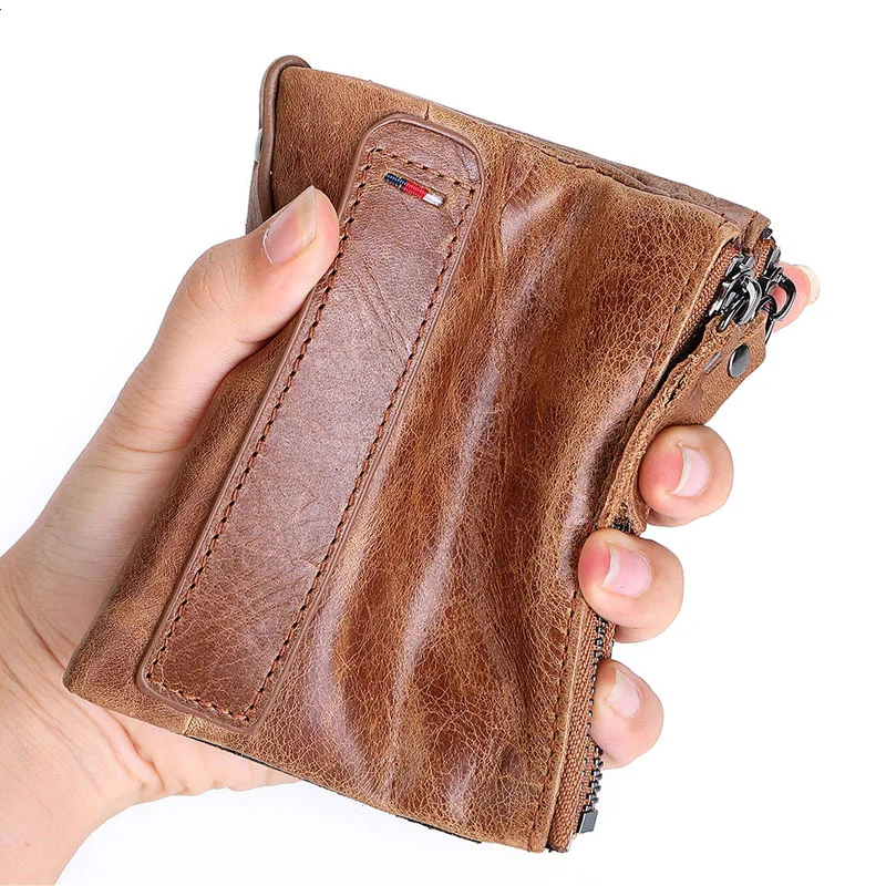 RFID мужской кошелек из натуральной кожи, короткий кошелек на двойной молнии, мужской брендовый кошелек с защитой от кражи, держатель для монет, зажим для денег, кошелек для мужчин