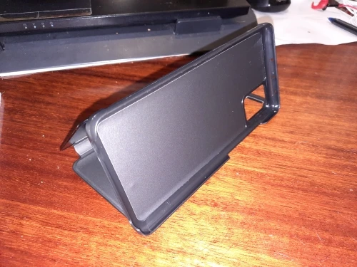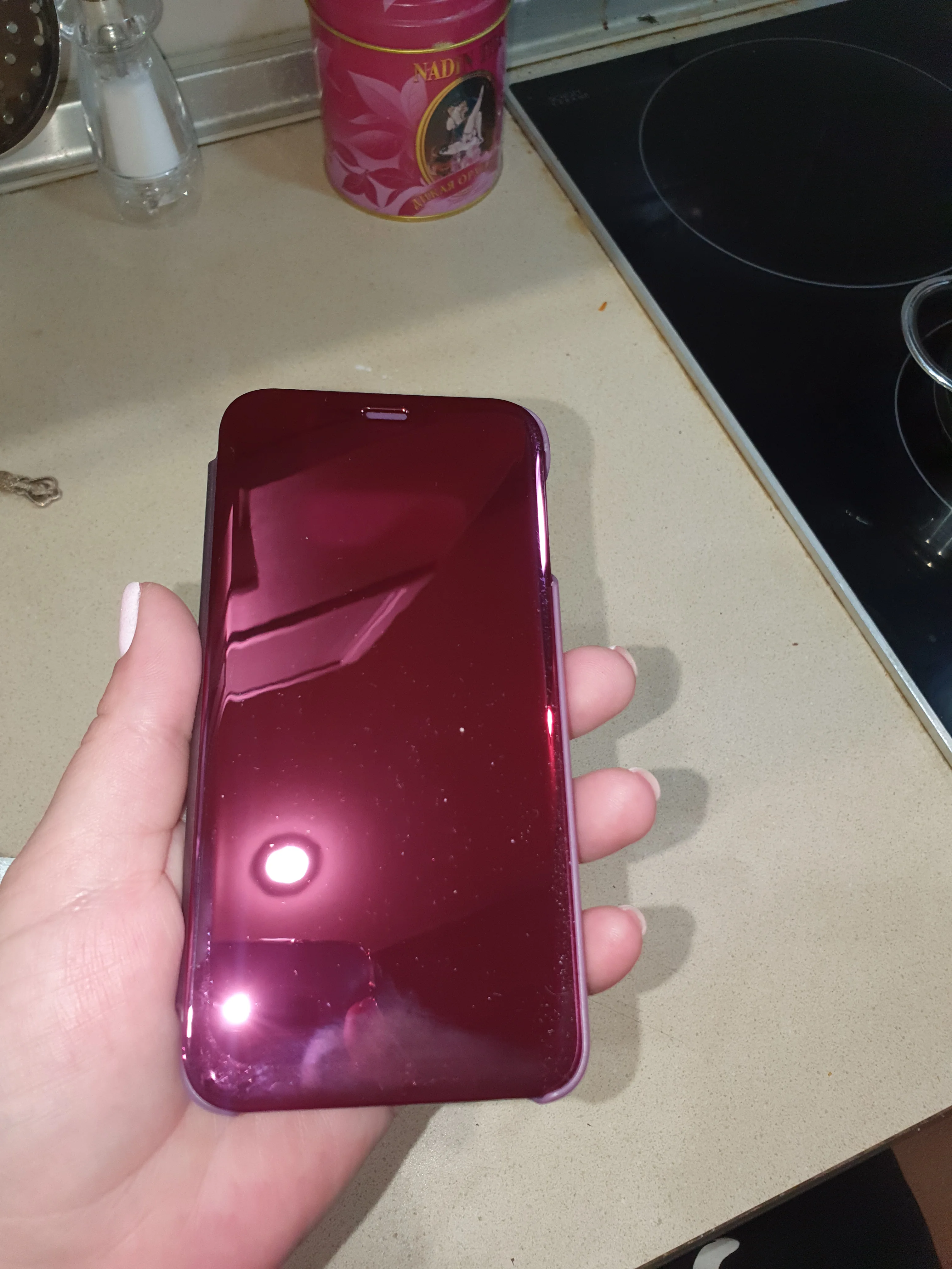 Сначала я подумал, что верхняя крышка чехла непрозрачная, но... в этом и есть эффект зеркала. Она прозрачна только когда смотришь снаружи. Подставка без фиксатора срабатывает только в одном положении. Однако, повышенная жесткость чехла из пластика возможно лучше подойдет, чем мягкий кожзам, сминающийся со временем. Доставка очень быстрая 12 дней. У чехла нет карманов и бокового фиксатора. За счёт зеркала смотрится гламурно.