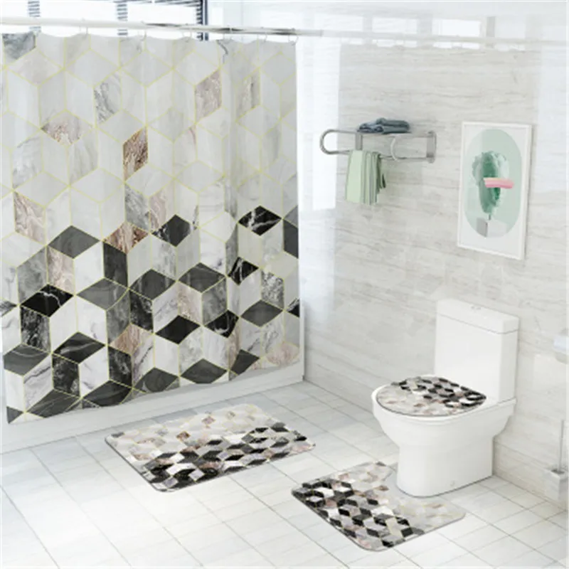 Занавеска для душа с мраморным рисунком, набор ковриков и водонепро...