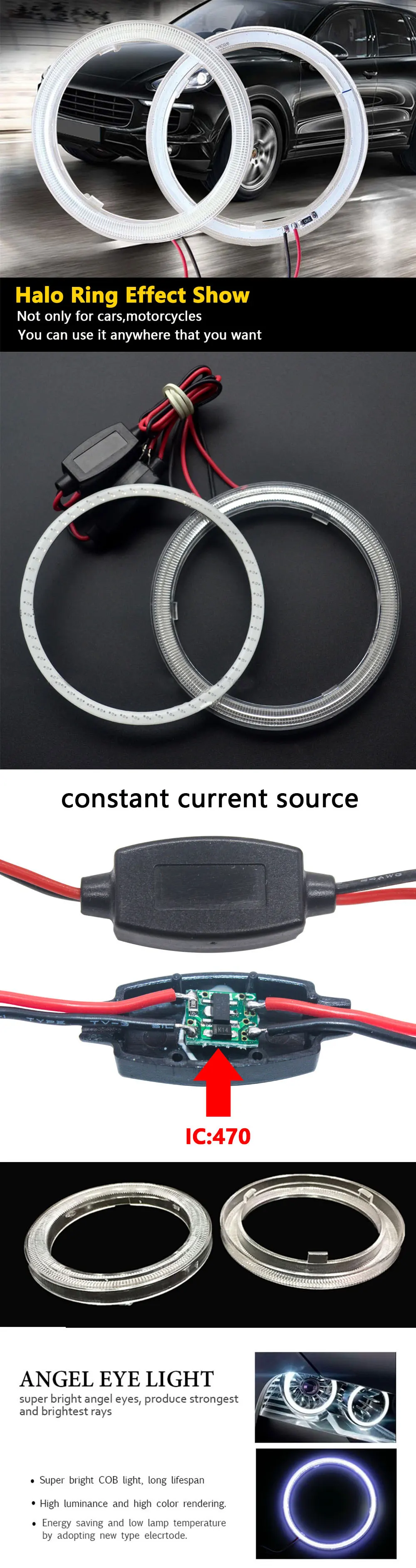 Описание:100% Новинка и высокое качество100% водонепроницаемыйИсточник светильник светодиодныйНапряжение: 12 ВТип изделия: ангельские глазкиСупер Яркий кольцевой светильник COBПара супер ярких ангельских глаз, производят самые сильные и яркие лучи, как будто пара острых глаз в темнотеВключая два кольца halo, хорошая форма и долговечностьДля источника питания 12 В постоянного токаРазмеры: 60 мм 70 мм 80 мм 90 мм 100 мм 110 мм 120 мм (outsize)Размеры: 50 мм 60 мм 70 мм 80 мм 90 мм 100 мм 110 мм (insize)Электрический ток:60 мм: 300 ~ 400 мА70 мм: 300 ~ 400 мА90 мм: 300 ~ 400 мА100 мм: 450 ~ 500 мА110 мм: 500 ~ 550ма120 мм: 550 ~ 600мАЦвет: белый/синий/красный/желтый/розовый/голубой/зеленыйОсобенность:Гибкий и прочныйПростота установкиДолговечныйУникальный яркий цветБыстрое время откликаСветодиодный ные лампы не такие яркие, как стандартные лампы накаливанияПосылка2 шт. COB ангельские глазсветильникПримечание: кольца не включают пластиковую крышку, если вы хотите, пожалуйста, приобретайте отдельно, спасибо!