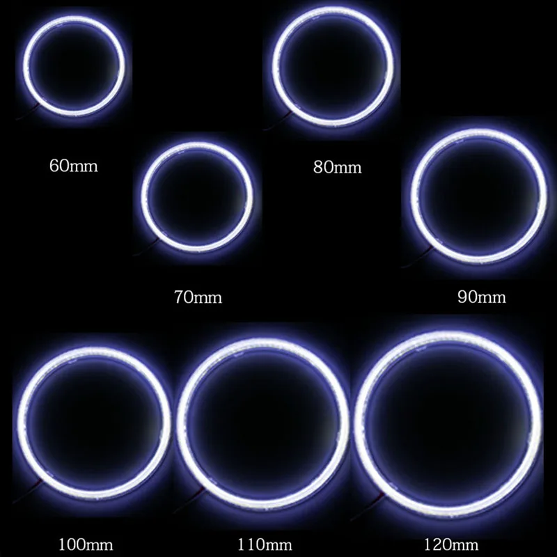 2 шт. DRL светодиодный ные глаза ангела, 60 мм 70 мм 80 мм 90 мм 100 мм 110 мм 120 мм, кольцевые светодиодные фары для автомобиля, мотоцикла, дневные ходовые огни