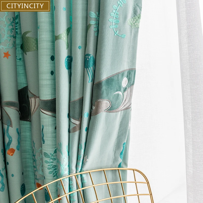 Type:whale Ocean fairy kid's curtain