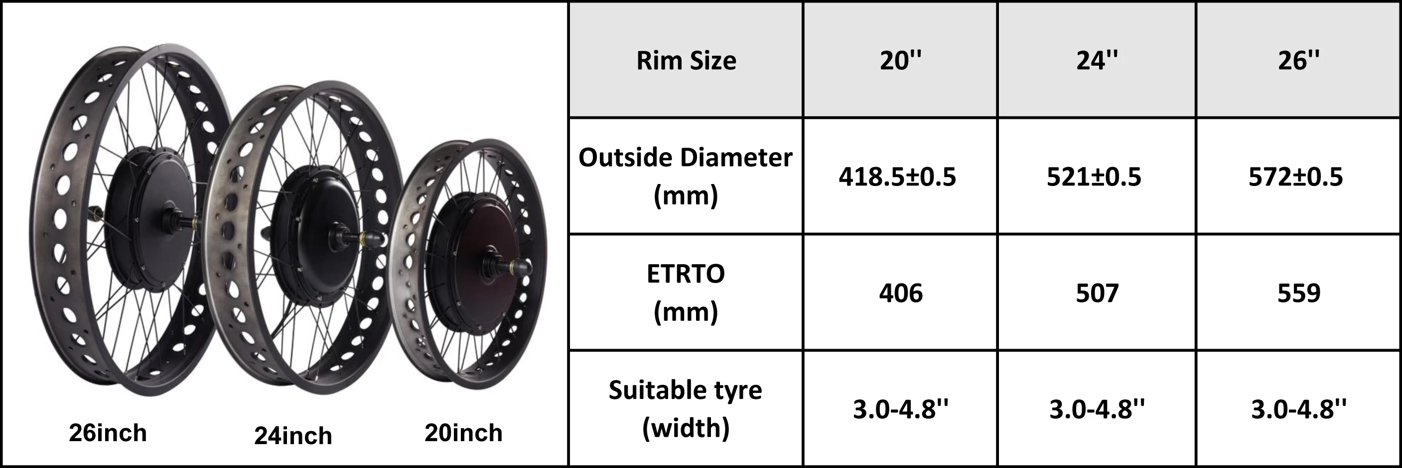 Wheel size available20'' 24'' 26''X4.0 inch
