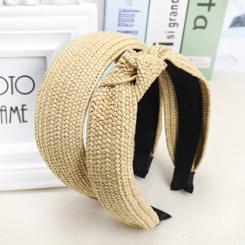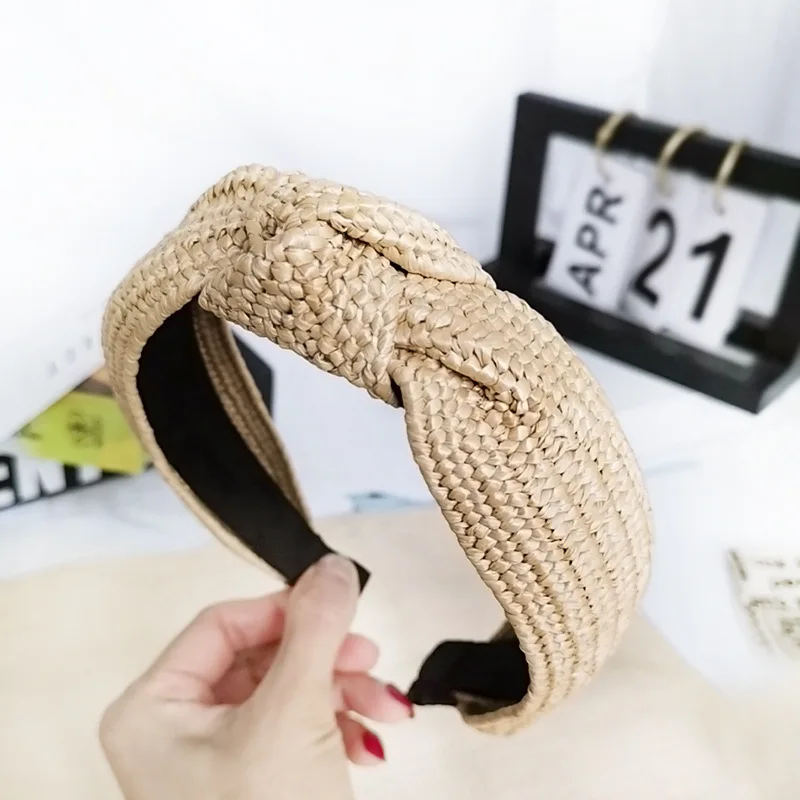 Корейский ободок для волос ручной работы из рафии праздничный ободок, Новинка весна-лето 2020, простой модный однотонный ободок для волос, аксессуары для волос