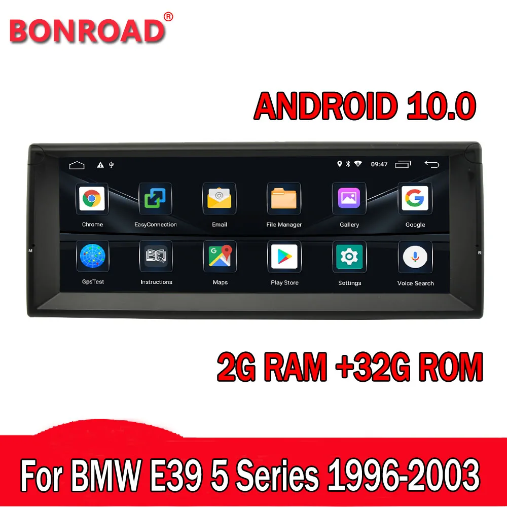 Автомобильный мультимедийный плеер Bonroad, плеер на Android 10, с экраном 10,25 дюймов, GPS, радио, DVD, для BMW E39 5 Series, 1996-2003, с памятью 2 ГБ и RMA 32 Гб