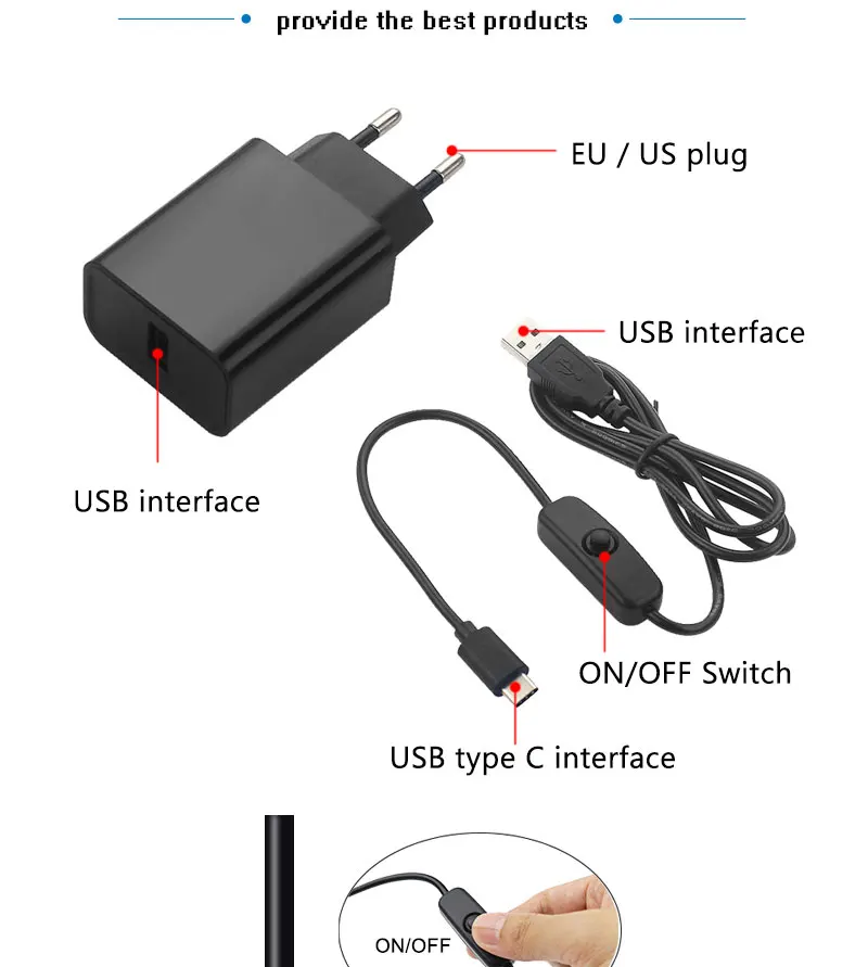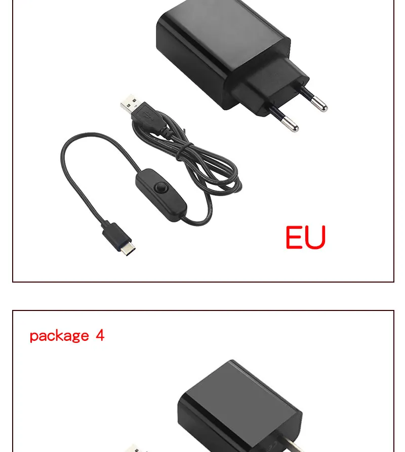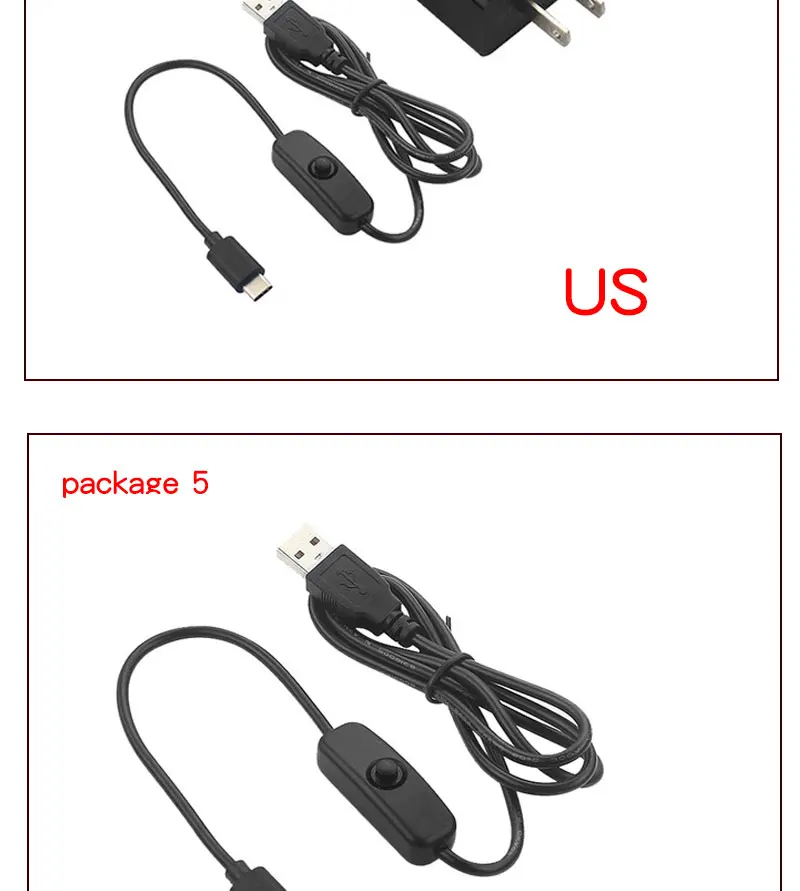 Адаптер питания Raspberry Pi 4 B, 5 В, 3 А, вилка европейского и американского стандарта, 1 м переключатель, USB-кабель, шнур питания для Raspberry Pi 4 RPI170