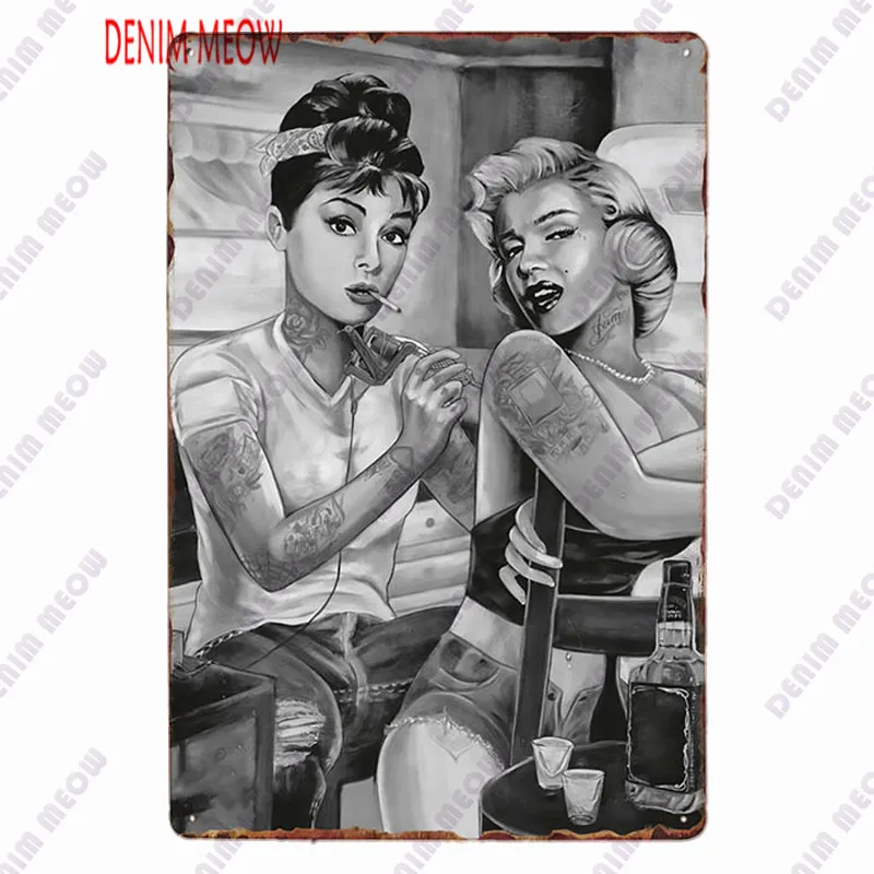 Сексуальная Женская Татуировка девушка металлический знак винтаж студия украшение стены живопись плакат вечерние кинотеатр магазин тату салоны домашний декор WY85