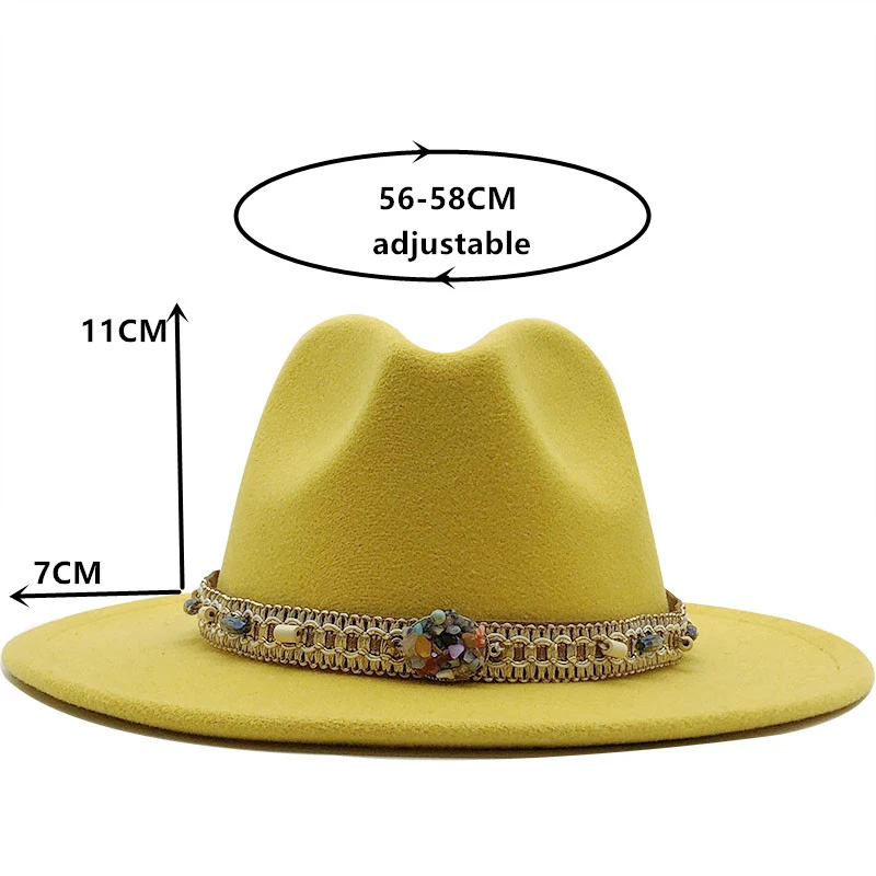 Men Women Wide Brim Wool Felt Fedora Panama Hat with Belt Buckle Ja...