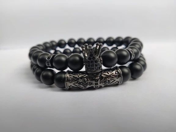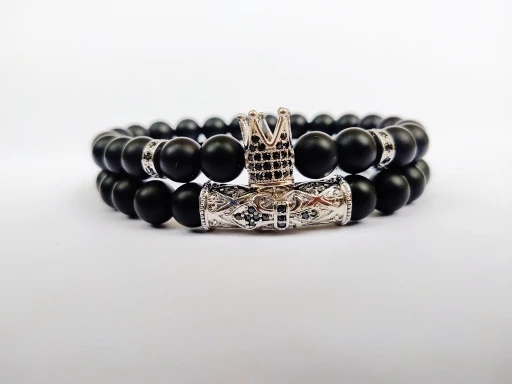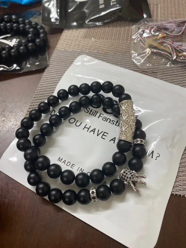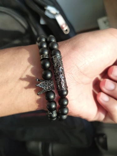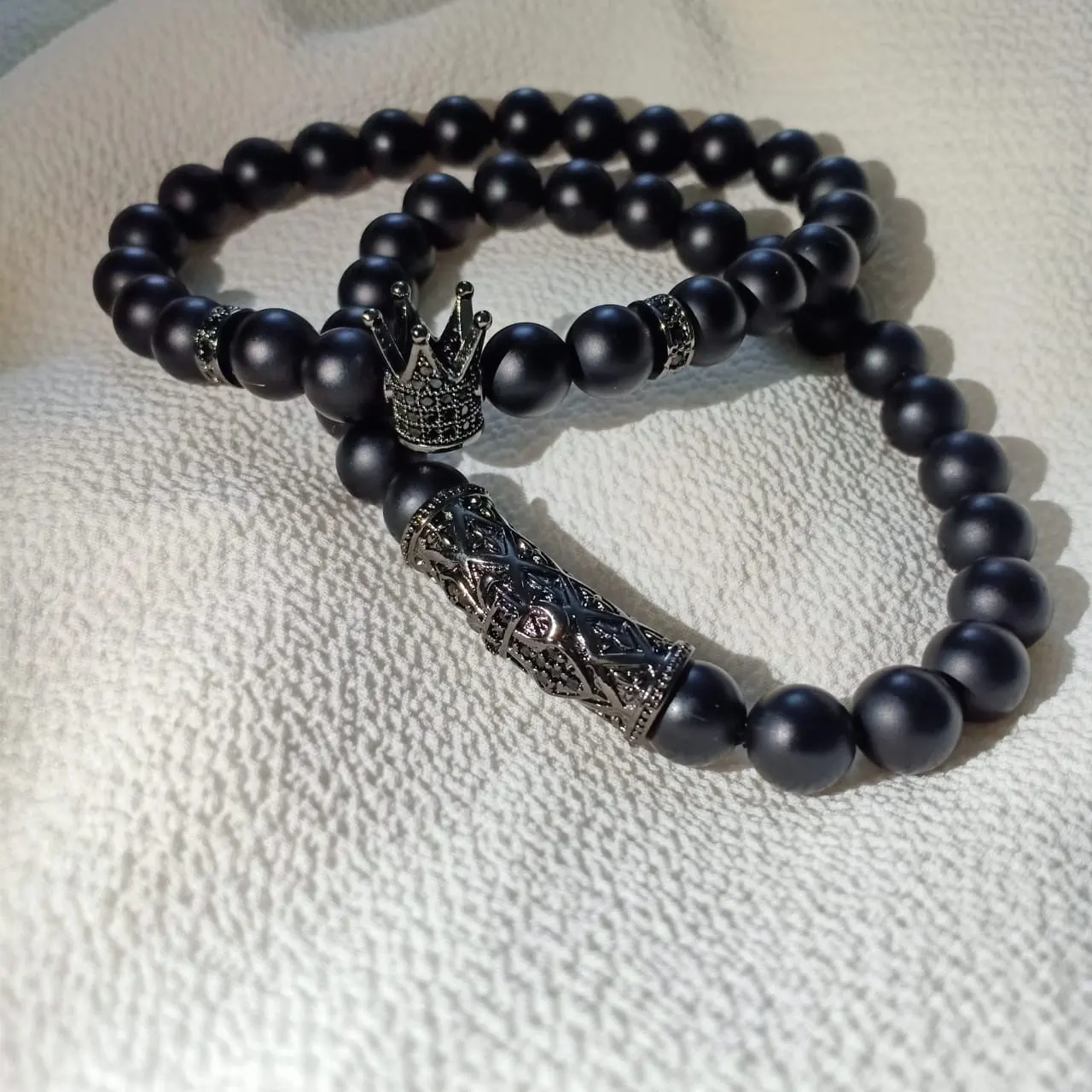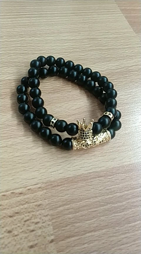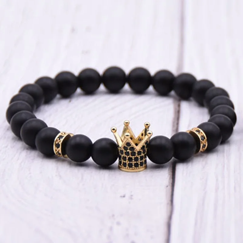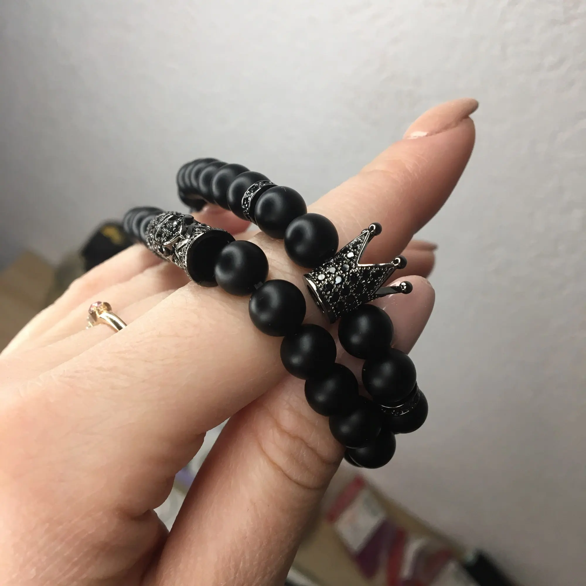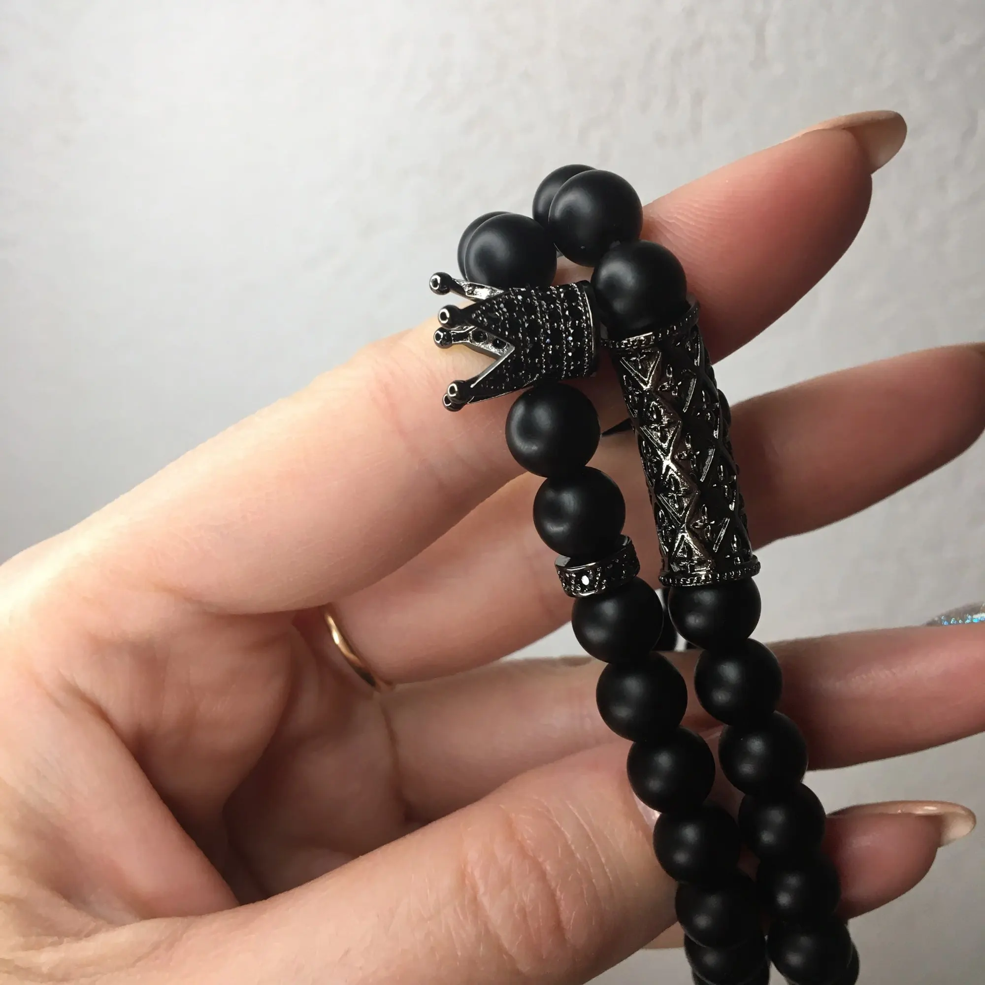 Браслет с короной ручной работы, 2 шт.компл., браслеты с каменными бусинами для женщин и мужчин, 2020
