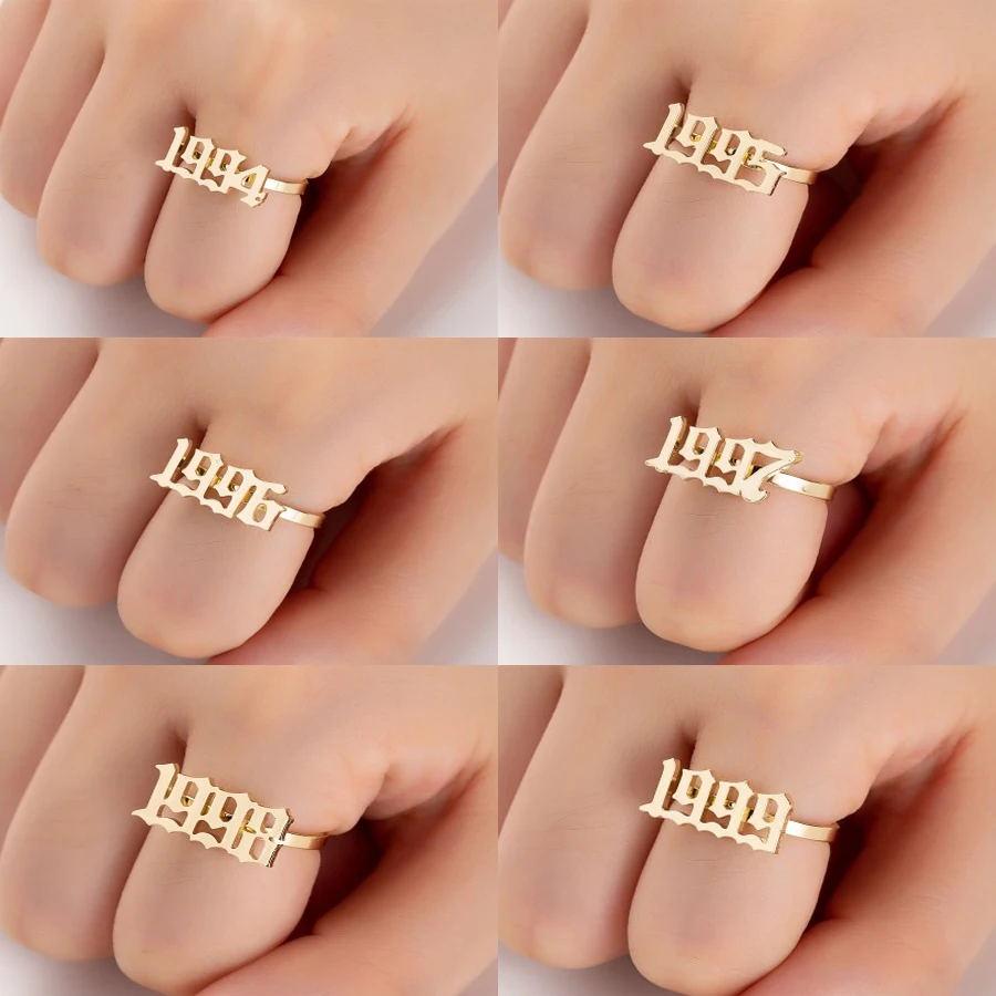 Oly2u панк 1994 1995 1996 кольца золотого цвета из нержавеющей стали для персонализации номера года открытые кольца Bague друзья ювелирные изделия на день рождения