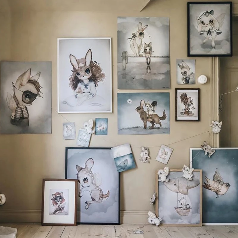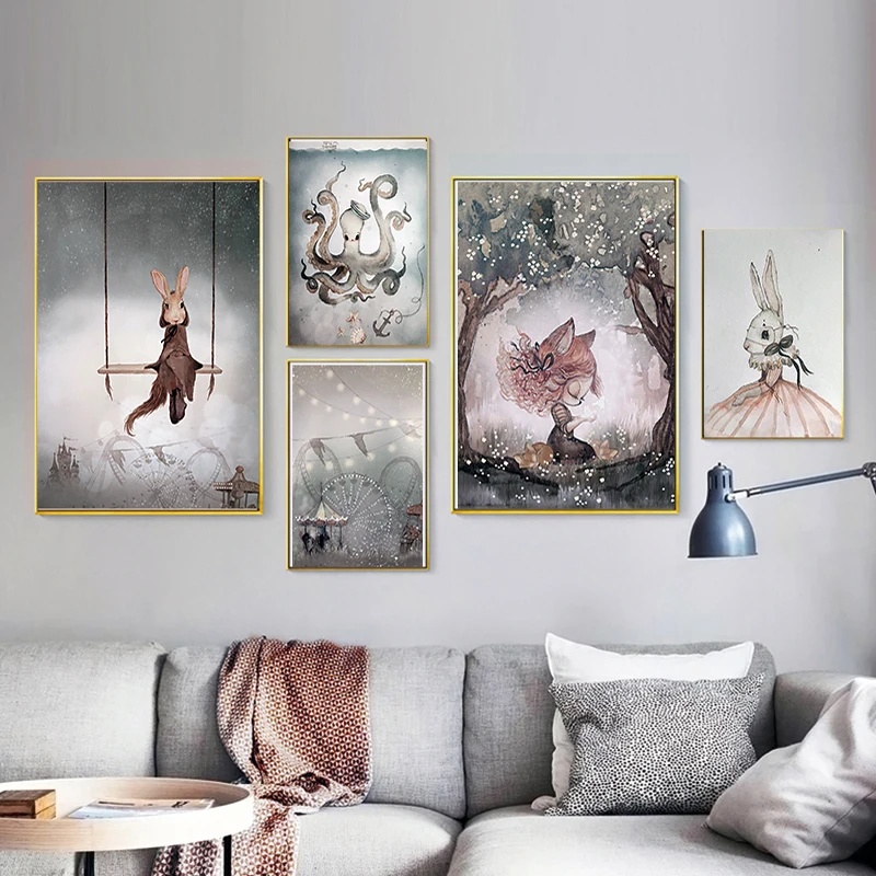 Kawaii Животные живопись на холсте, мультфильмы кролик Плакаты прин...