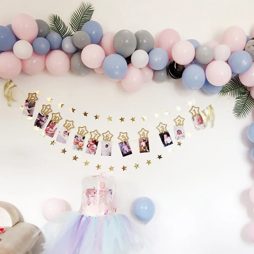 Баннер 12 месяцы фоторамка, украшения для первого дня рождения, 1 г...