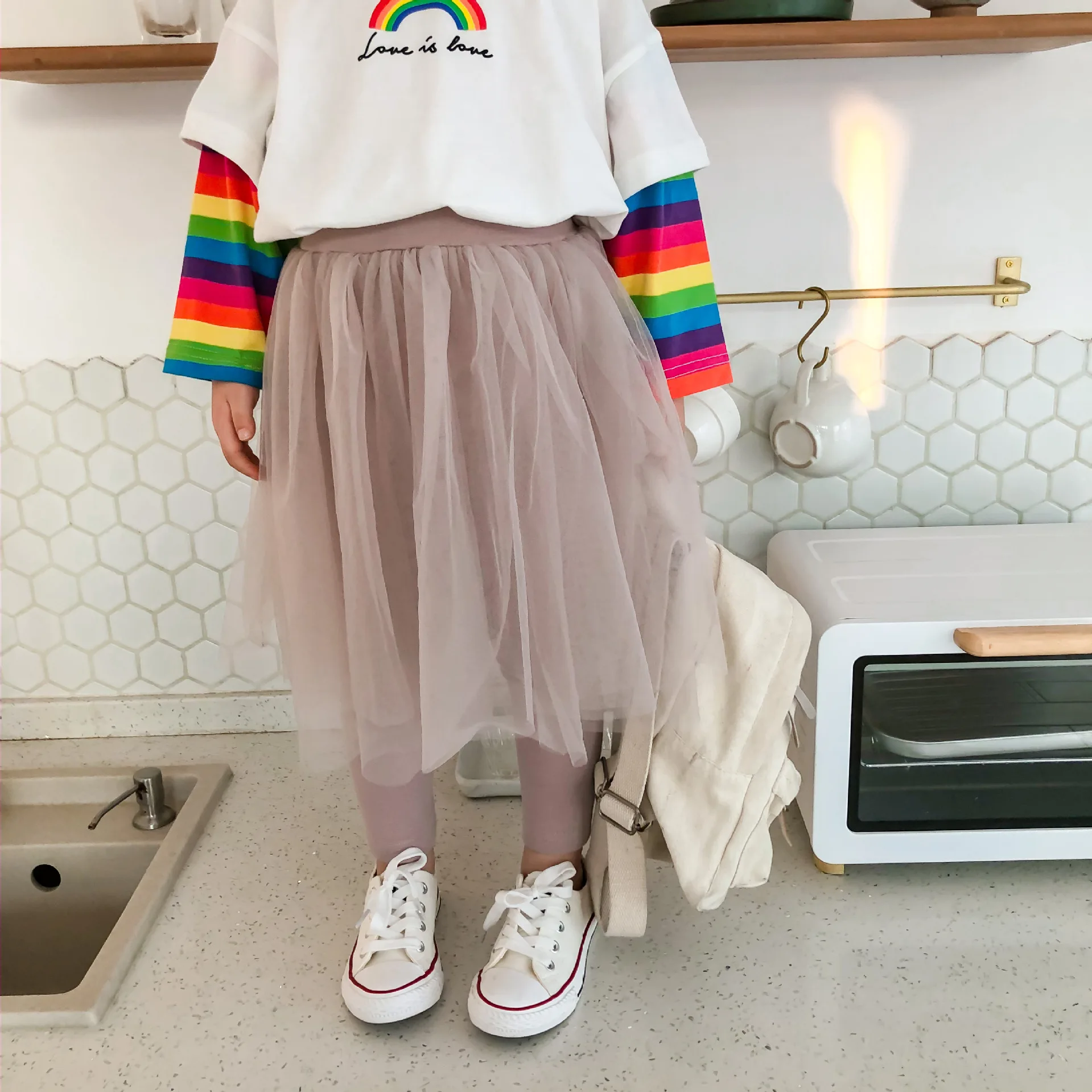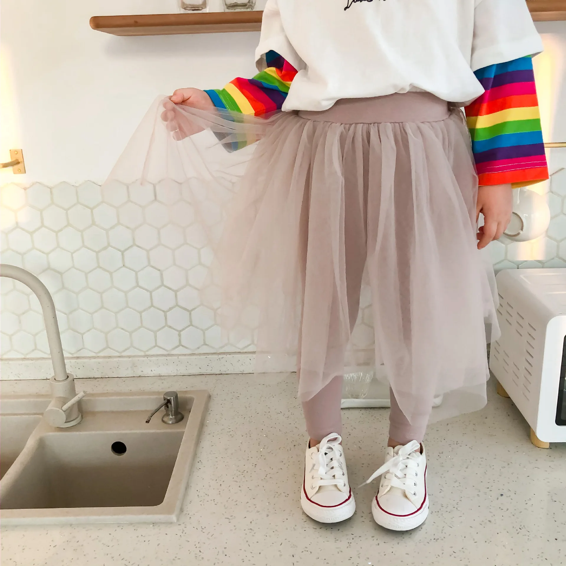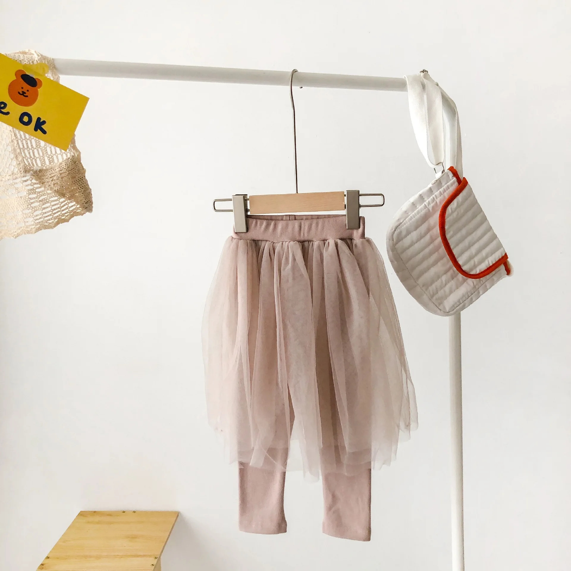 Новое поступление, весенние однотонные леггинсы принцессы в Корейском стиле с юбкой гренадина для милых маленьких девочек