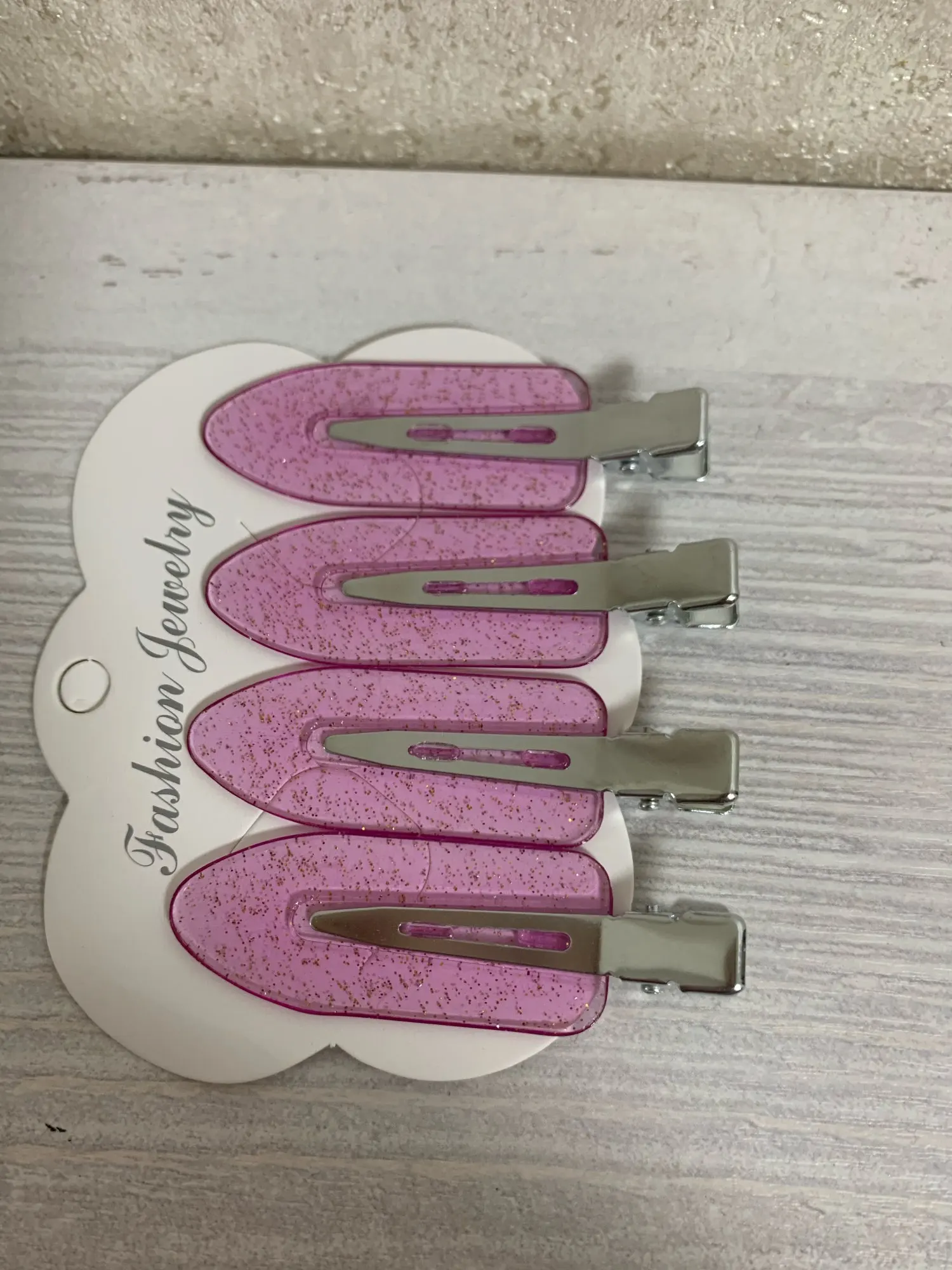 Хорошие заколки, держат некрепко, как раз так, чтобы не оставить заломов на волосах. Полупрозрачный розовый цвет с блестками. Шли довольно долго до Брянской области