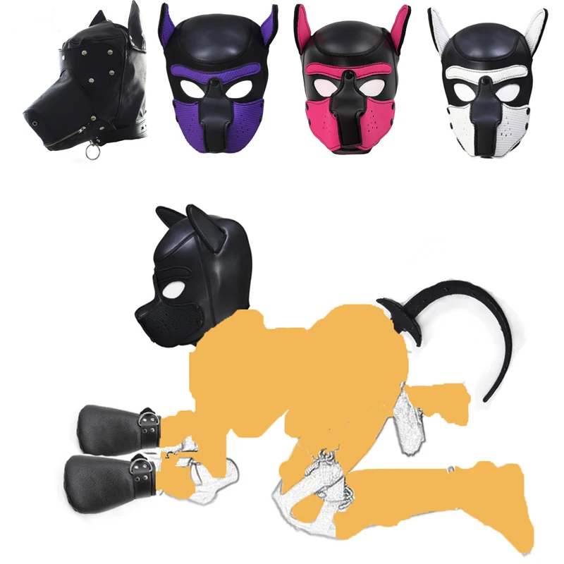 БДСМ собака ролевые игры щенок играть собачий капюшон маска собачьи перчатки-лапки ползать, фантазия собачий хвост вилка сексуальный костюм взрослые игры секс игрушки