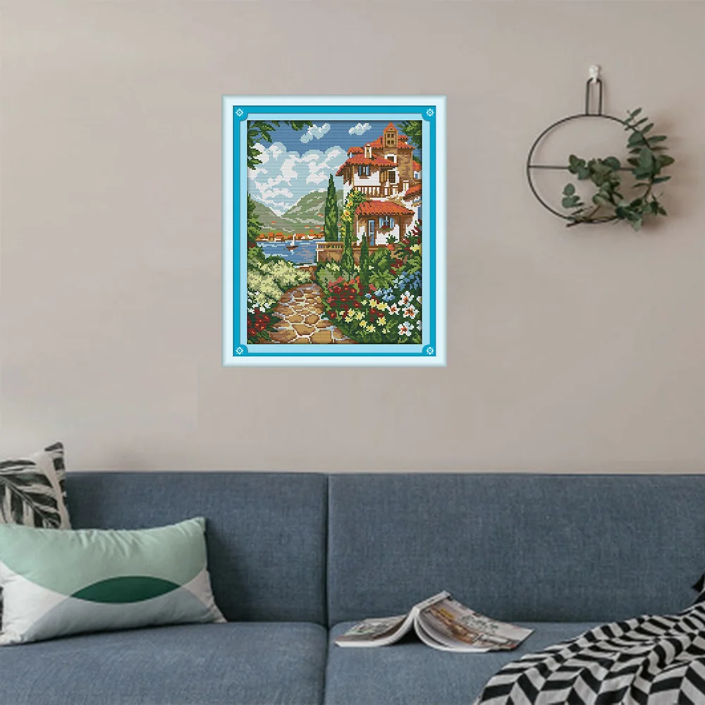HUACAN приморский город Счетный крест наборы 14ct 11ct белый холст ...