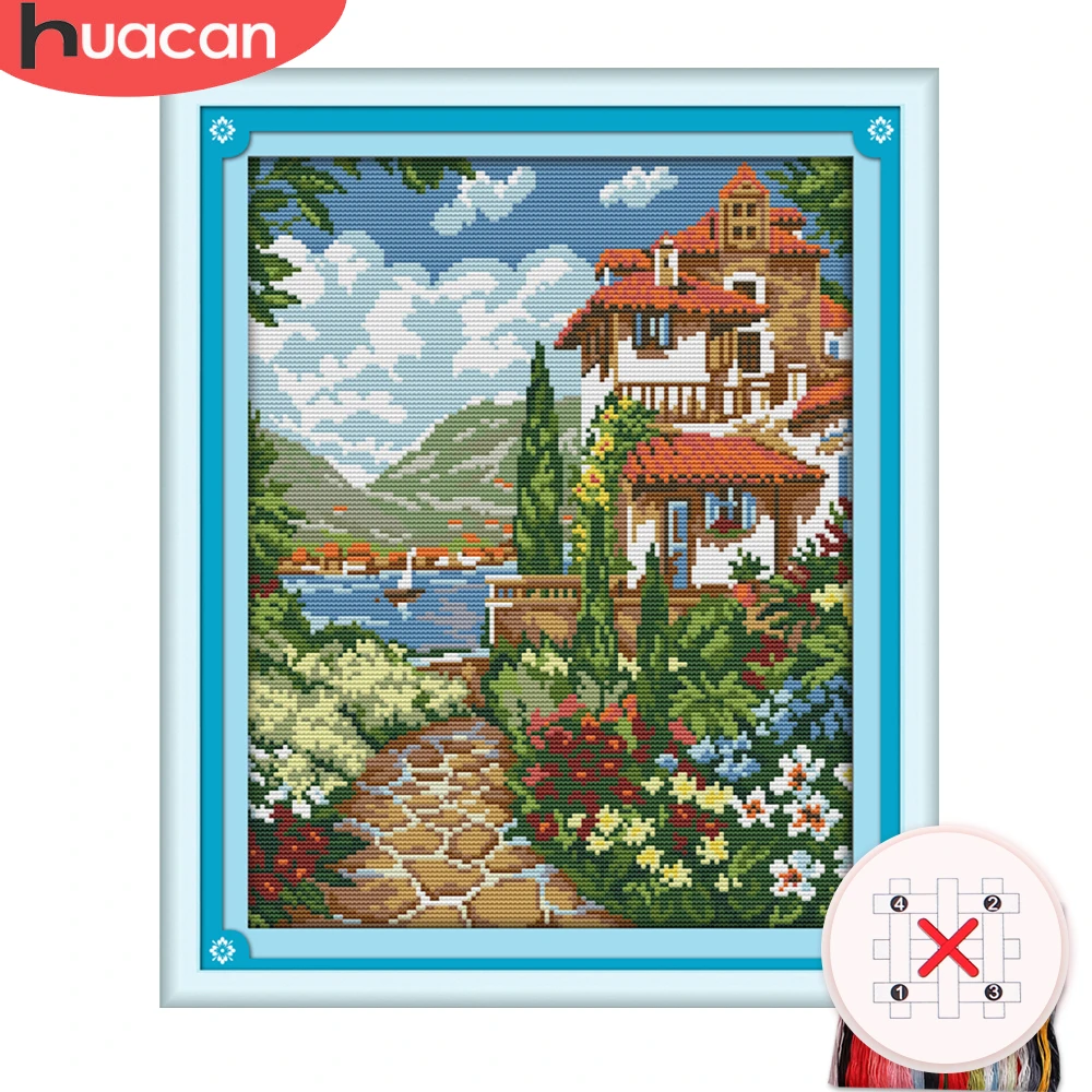 HUACAN вышивка крестиком Приморский Пейзаж Набор сделай сам цветок ...