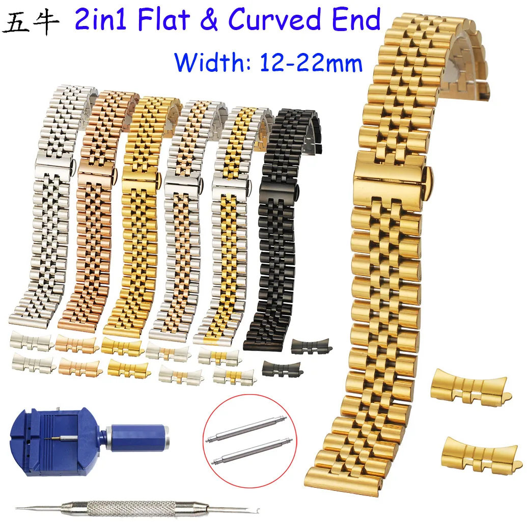 Ремешок для часов из нержавеющей стали, 2 в 1, плоский, изогнутый, полукруглый, 12, 13, 14, 16 мм, 17, 18, 19, 20 мм, 21, 22 мм