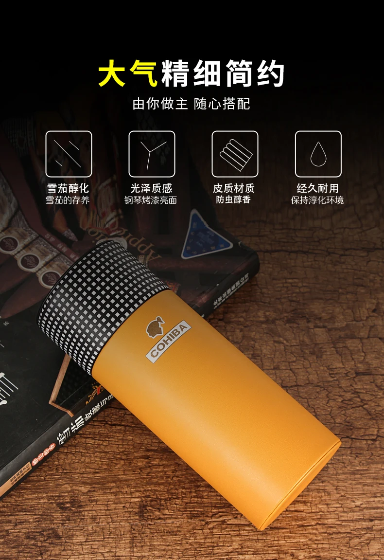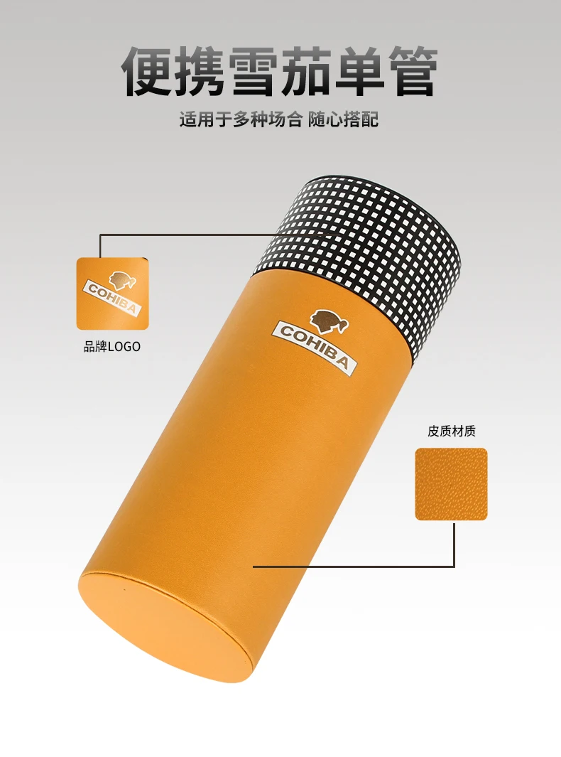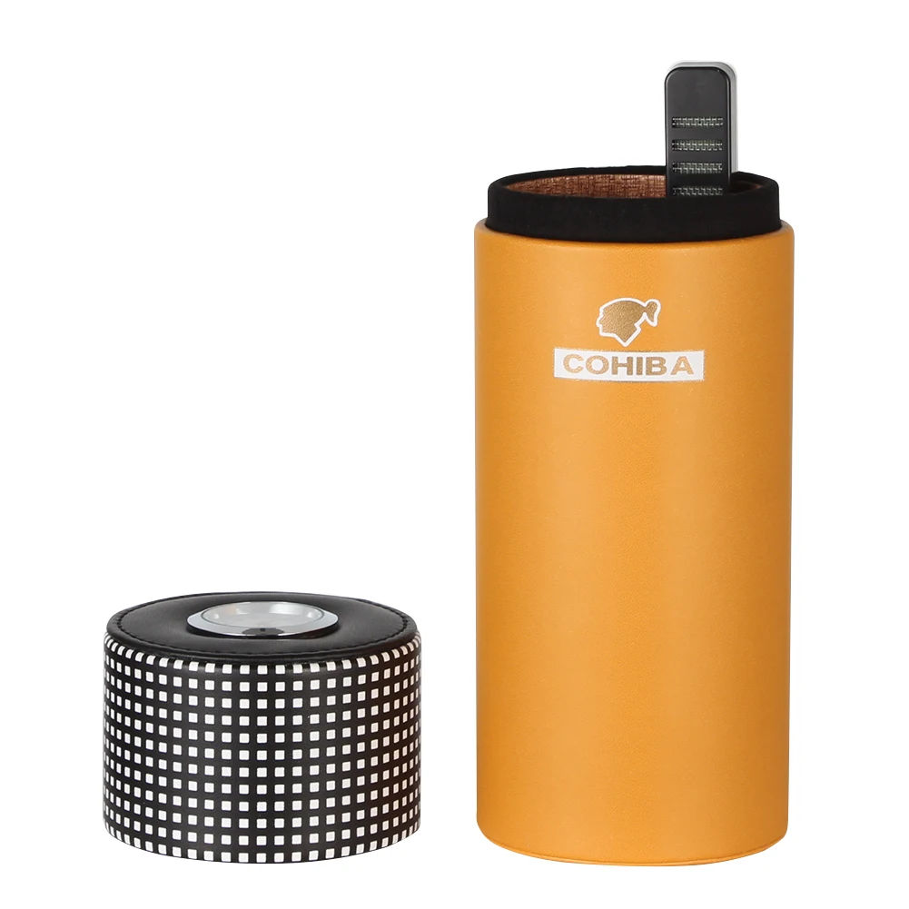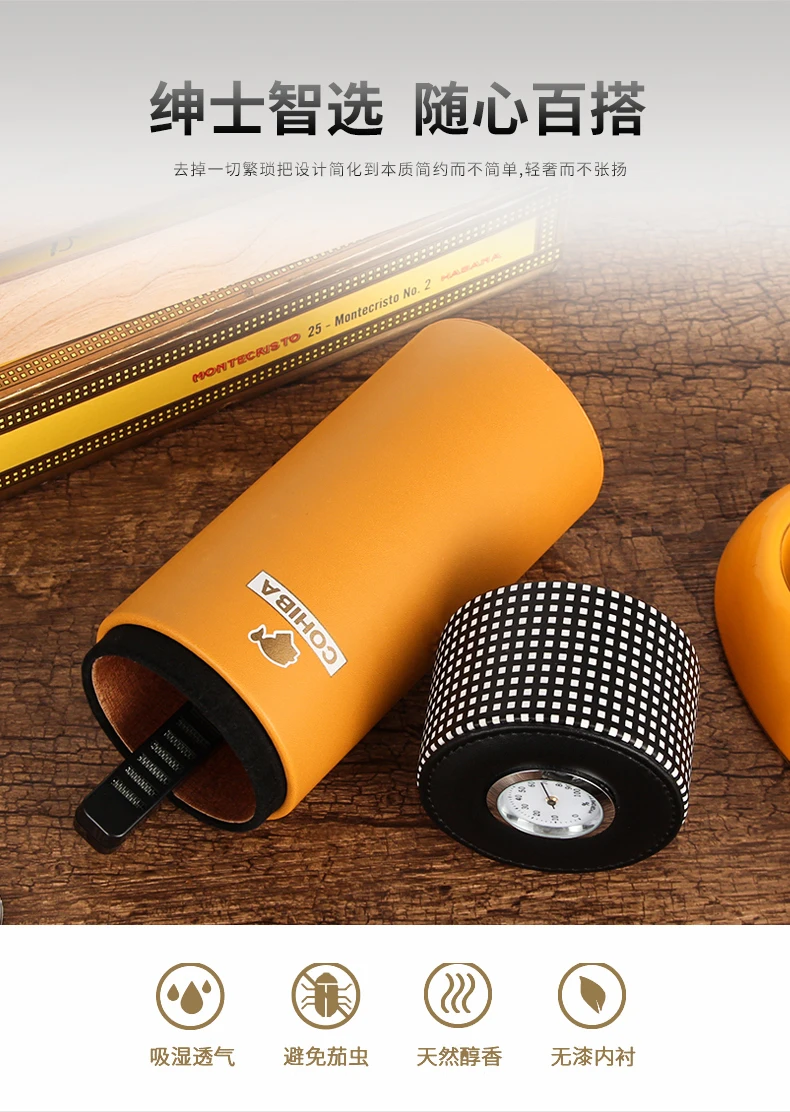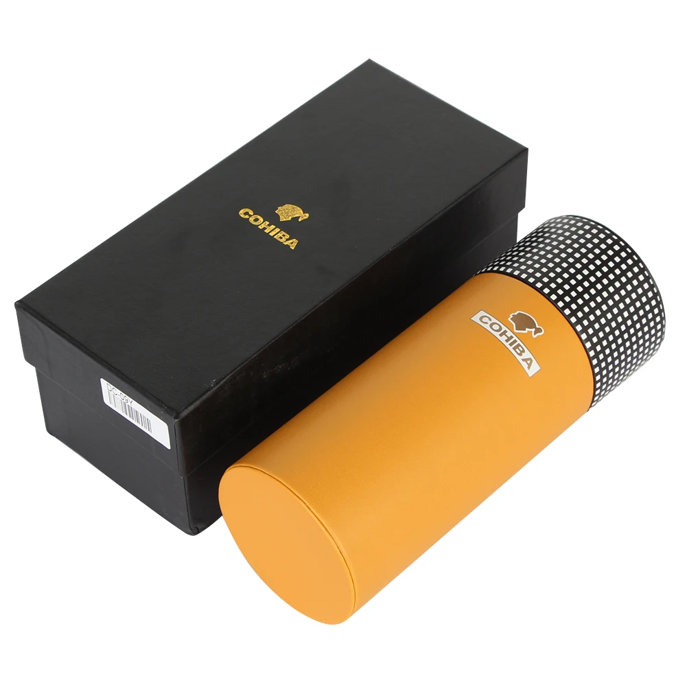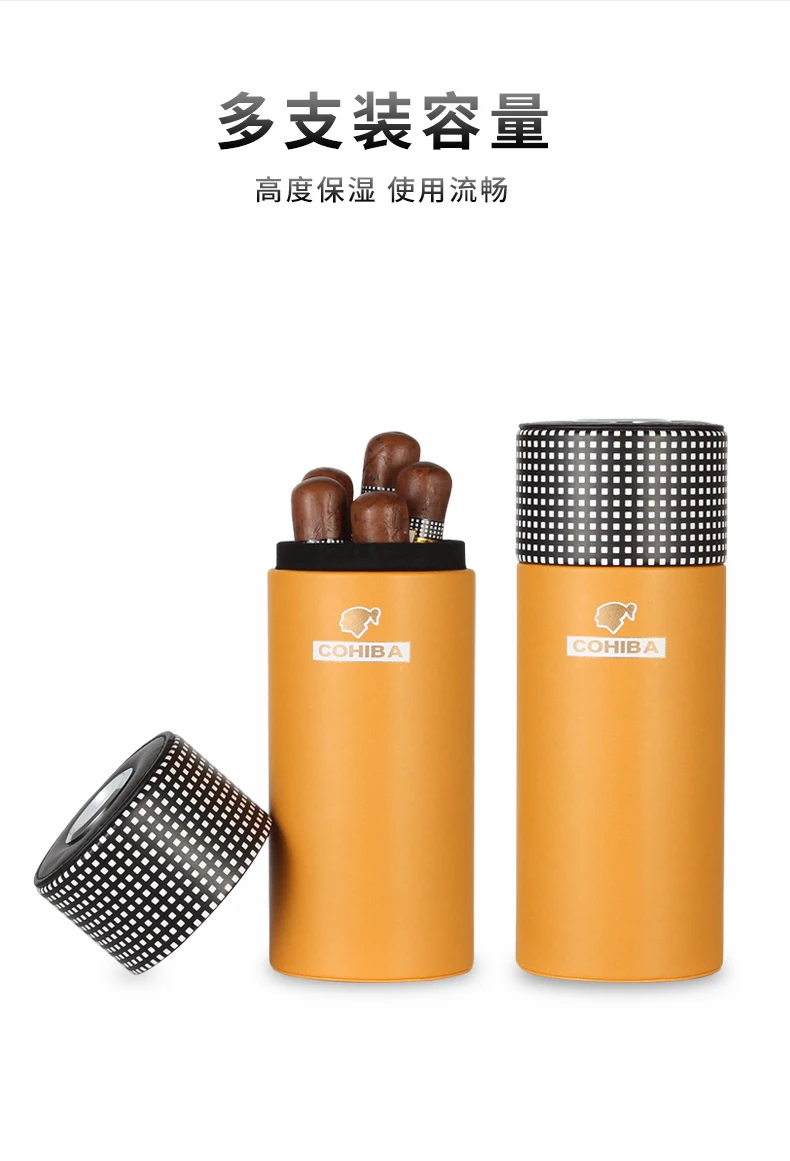 Кожаная банка для сигар COHIBA, портативная коробка для сигар из кедрового дерева, коробка для сигар с увлажнителем, гигрометр, подходит для 5 сигар, хьюмидор