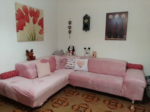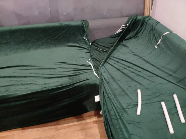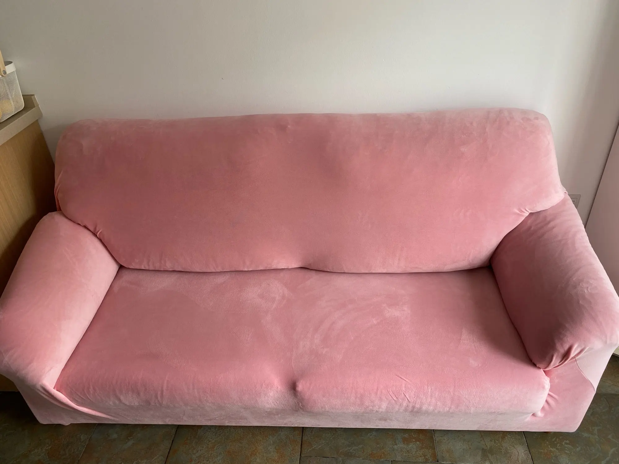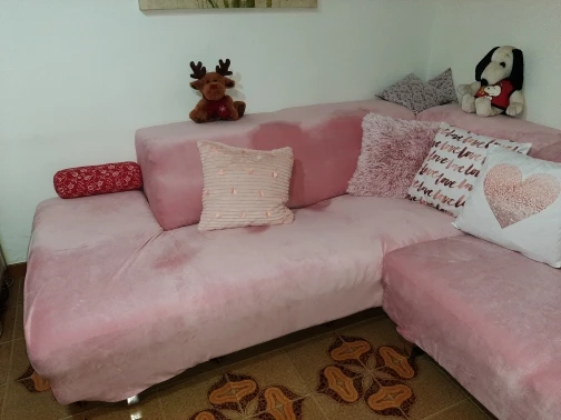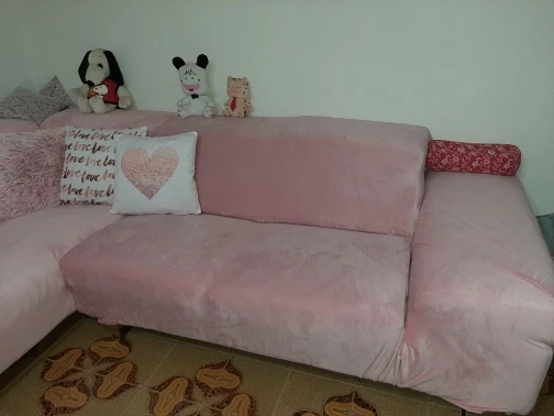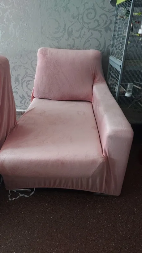Красивый чехол для дивана из розового бархата, отличная очень эластичная ткань. Для моего углового дивана я купил 2 штуки на размер больше. Прибыл заранее и очень хорошо упакован. Продавец продукта