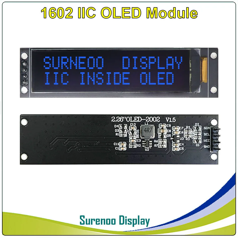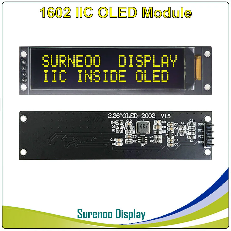 OLED дисплей, ЖК-модуль с LCM дисплеем, 2,26 дюйма, 1602, 162 символов IIC I2C, белый, желтый, KS0066 для Arduino STM32