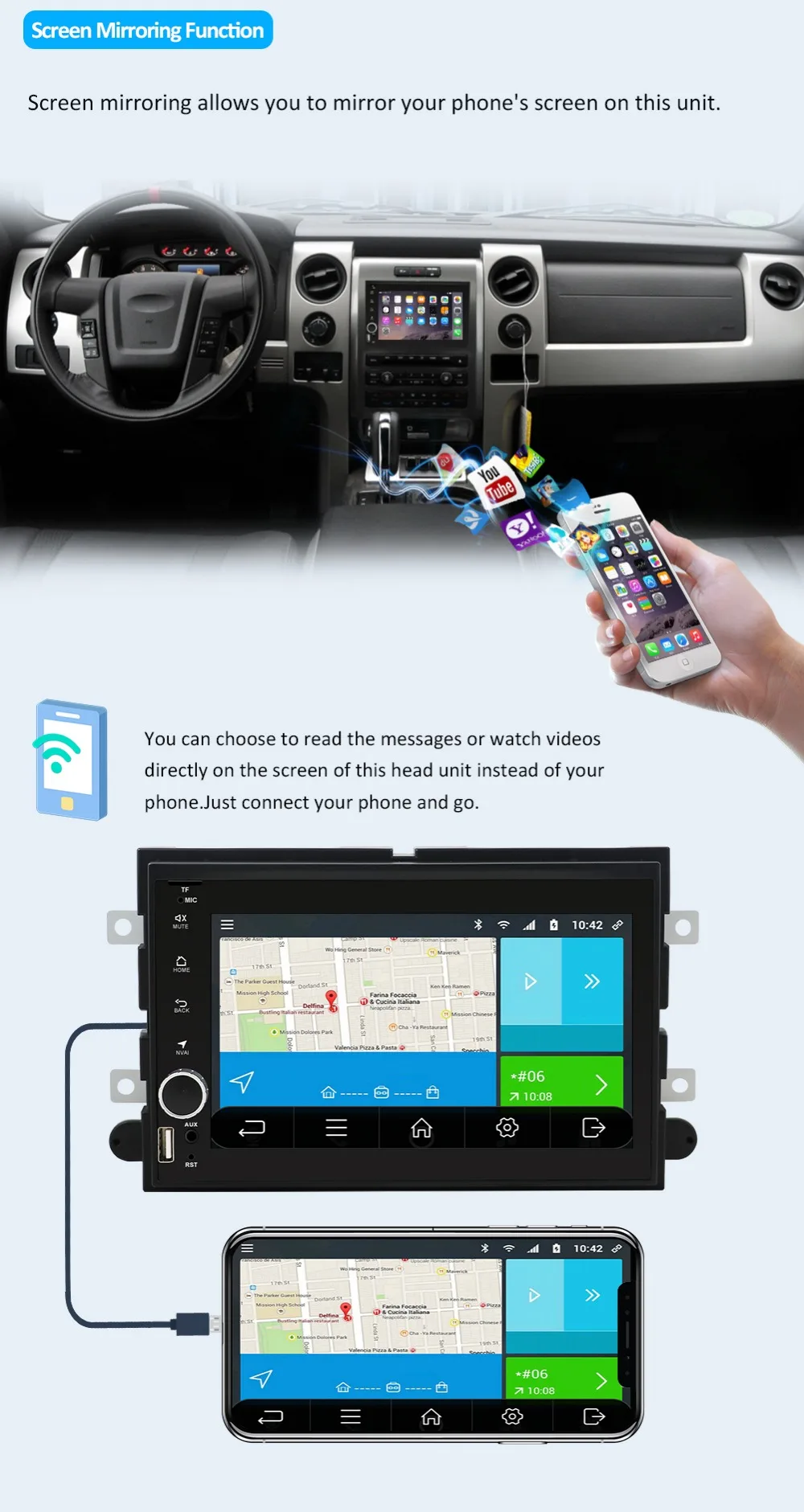 featuresCapacitive touch scren,Steering Wheel Control, Mic, Speakers,USB,SD