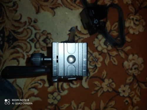 девайс удобный и явно прочный. люфта нет. сидит уверенно. крепится удобно. что бы снять или одеть фотоаппарат нужно повернуть винт на 3 оборота. винт с обрезиненной рукояткой, стилизованной под уровень. очень приятна на ощупь. запаха нет. функционал на достойном уровне. я доволен. продавец молодец.