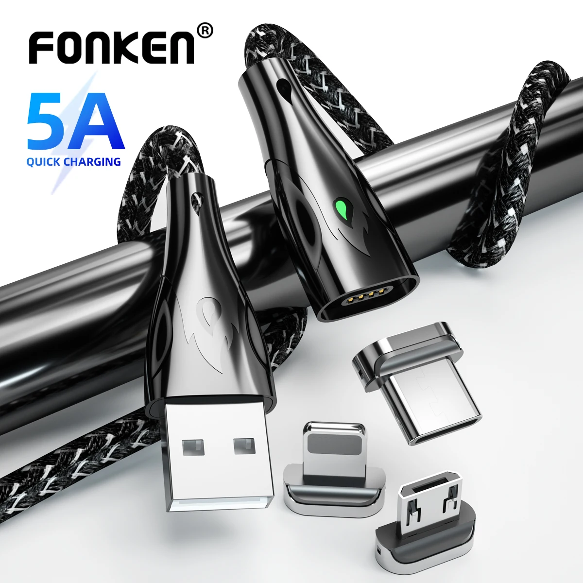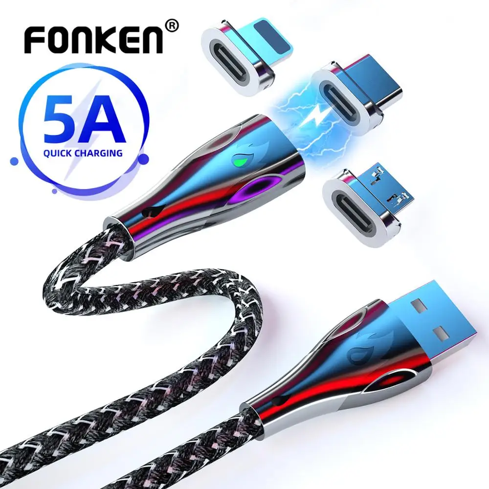 Кабель Fonken USB Type-C для Samsung S9, Xiaomi Mi 9, 10 Pro, Iphone магнитный