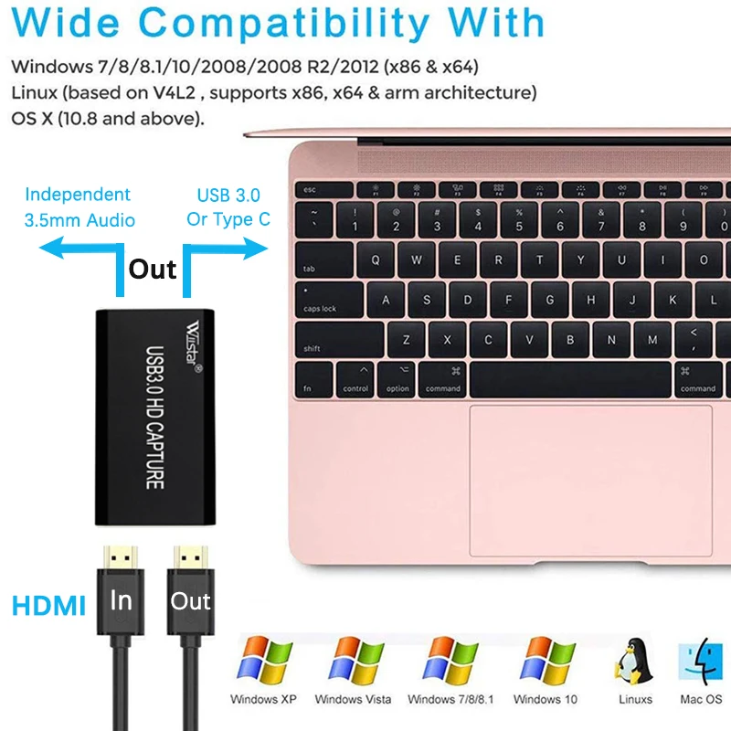 Это HD к USB3.0 высокой четкости видео захвата ключ, который не нужно устанавливать драйверы и поддерживает подключи и играй. Он отличается превосходной производительностью, превосходной совместимостью и прост в установке и переноске. Он может записывать один одноканальный HD видеосигнал и поддерживать разрешение входного и выходного видеосигнала до 1080P при 60 Гц. И, он совместим с UVC видеозахватом и YUV 422 видеовыходом. UAC совместим с HD аудио захватом и 48 кГц PCM аудиовыход. Кроме того, он имеет суперсовместимость, Совместимость с Windows, Linux, для Mac OS X и USB 3,0. Это принесет вам много удобства и удовольствия. Особенности: [Высокопроизводительный ключ захвата] Может записывать один одноканальный HD видеосигнал и поддерживать разрешение входного и выходного видеосигнала до 1080P при 60 Гц с аппаратным ускорением масштабирования/уменьшения. Кроме того, он поддерживает UVC видео Захват и YUV 422 видео выход, UAC совместим с HD аудио захвата и 48 кГц PCM аудио выход. [Уникальный дизайн] USB 3,0 (300-350 МБ/с. пропускной способностью) совместим с USB 2,0 и может автоматически определяет формат ввода видео и преобразует его к определенному размеру выхода и частота кадров, автоматически обнаруживает входные аудио форматы и преобразует их в 48 кГц PCM стерео аудио. Процесс видео и аудио осуществляется с помощью ключа и не будет занимать ЦП. [Улучшенный дизайн совместимости] Совместим с несколькими USB 3.0 чипсет (для Intel, Renesas, для ASMedia, для Fresco Logic) и USB 3. Интерфейс 0, который прошел PCIe для расширения Gen 1,1x1, также совместим с Windows (7, 8, 8,1), Linux (версия ядра и выше) и OS X (10,8 и выше). [Широкое использование] Поддерживает несколько стандартных портов разработки, включая DirectShow (Windows), DirectSound(Windows),V4L2 (Linux), ALSA (Linux),QuickTime(OS X). Поддержка совместимости программного обеспечения: кодировщик Windows Media (Windows); Для Adobe Flash Media Live Encoder (Windows, OS X); Настоящий производитель Plus (Windows); VLC (Windows, OS X, linux); QuickTime broadcaser (OS X); QuickTime Player (OS X); Wirecast (Windows, OS X); Potplayer(Windows) и т. Д. [Простая установка и использование] Поставляется с компактным портативным размером; Нет необходимости устанавливать драйверы и поддерживает подключи и работай (это действительно PnP). Стабильный и надежный, он принесет вам много удобства и удовольствия. Характеристики: Тип товара: HD до USB3.0 видеозахватный ключ Стандарты записи аудио и видео UVC и UAC Интерфейс: HD 1.4 входа (HDCP1.4), совместим с выходом DVI 1,0; USB3.0 (300-350Mbps). Поддержка разрешения входного сигнала HD: 480i, 480p, 576i, 576p, 720p/50, 720p/60, 1080i/50, 1080i/60, 1080p2 4/25/30/50/60. Поддерживаемое разрешение выхода HD: 640*480; 720*480; 720*576; 768*576; 800*600; 1024*768; 1280*720; 1280*800; 1280*960; 1280*1024; 1368*768; 1440*900; 1600*1200; 1680*1050; 1920*1080; 1920*1200; 640*360; 856*480; 960*540; 1024*576. Цветовое пространство: RGB / YCBCR 4:2:2 / YCBCR 4:4:4 Поддержка аудиовхода: LPCM 32 ~ 192 кГц; Поддержка аудиовыхода: LPCM 48 кГц. Частота кадров: 24/25/30/50/60 кадров в секунду