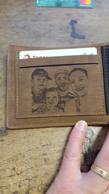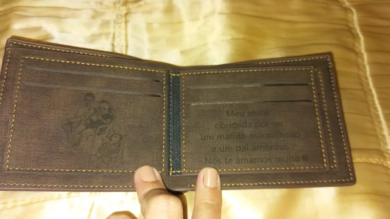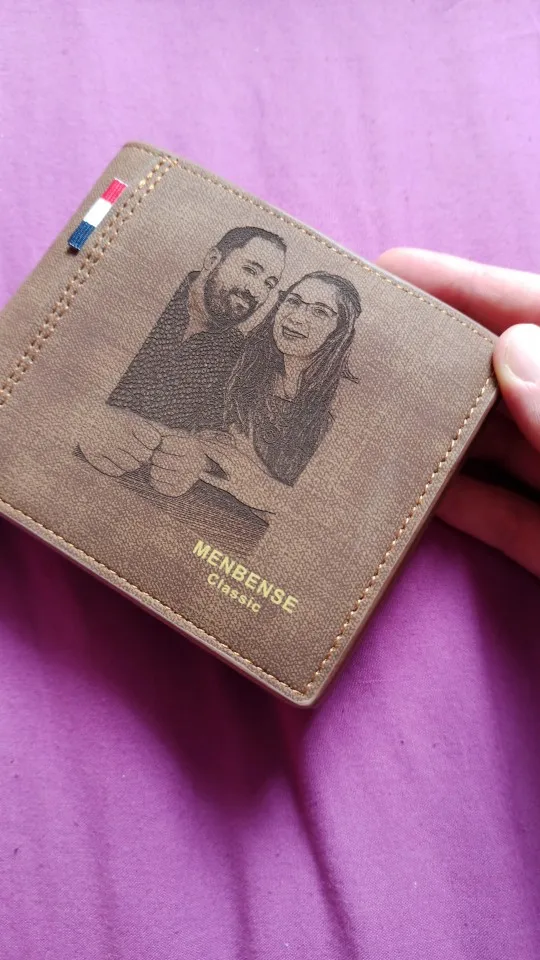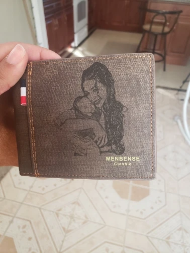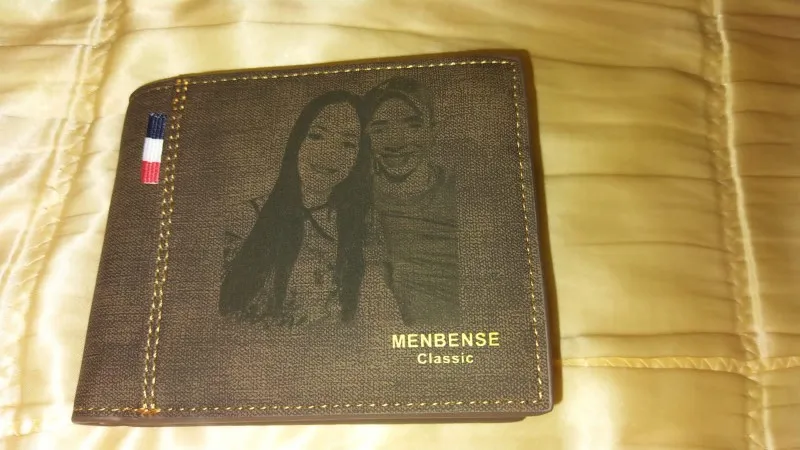 Бумажник не очень хорошего качества,своих денег не стоит,ну а сами фото на бумажнике получились хорошо,старайтесь фото выбирать крупным планом.